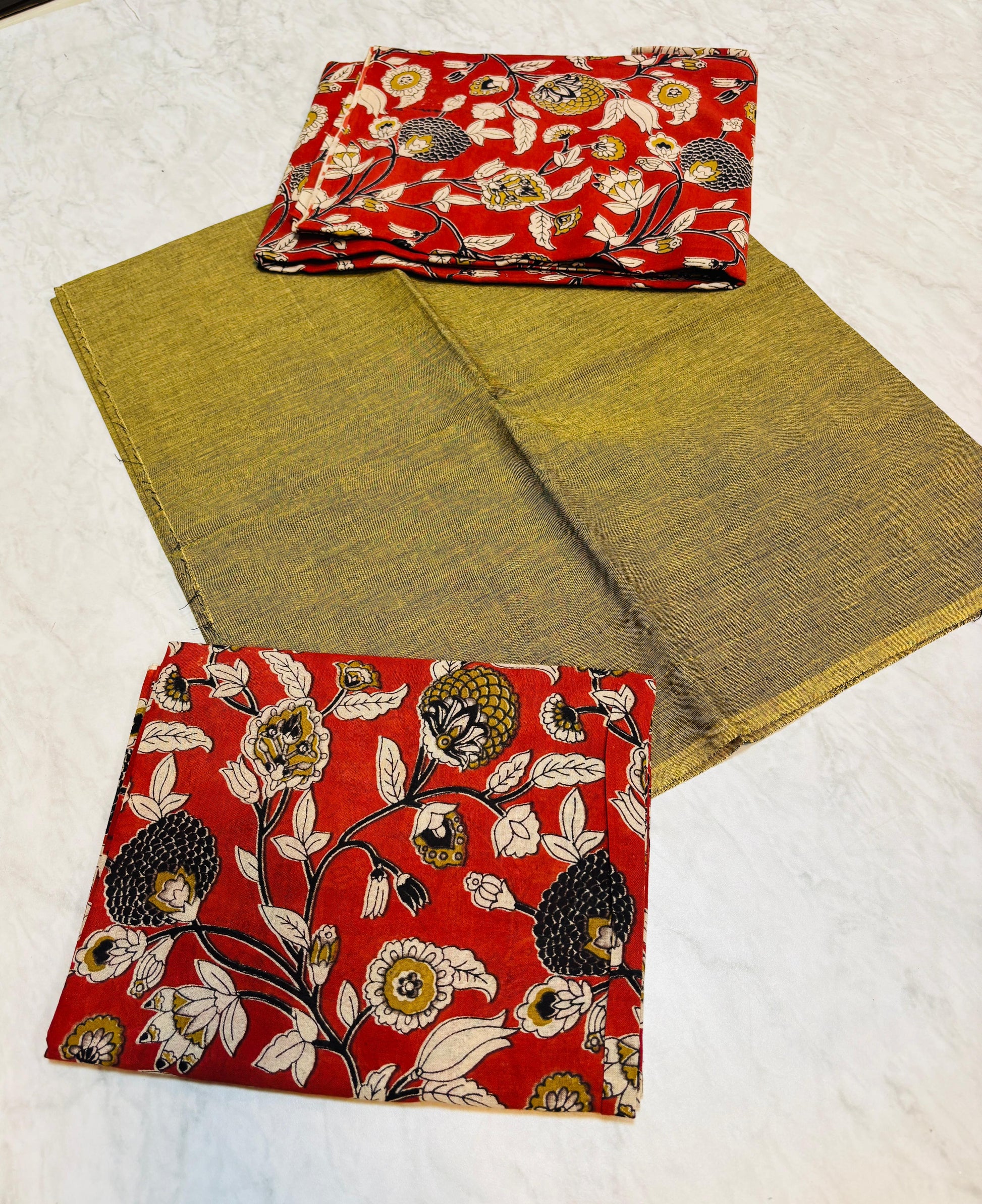 Discover the charm of handcrafted elegance with our premium Kalamkari dress material set. Designed with intricate traditional motifs, this 3-piece ensemble brings together artistry and comfort in every thread.