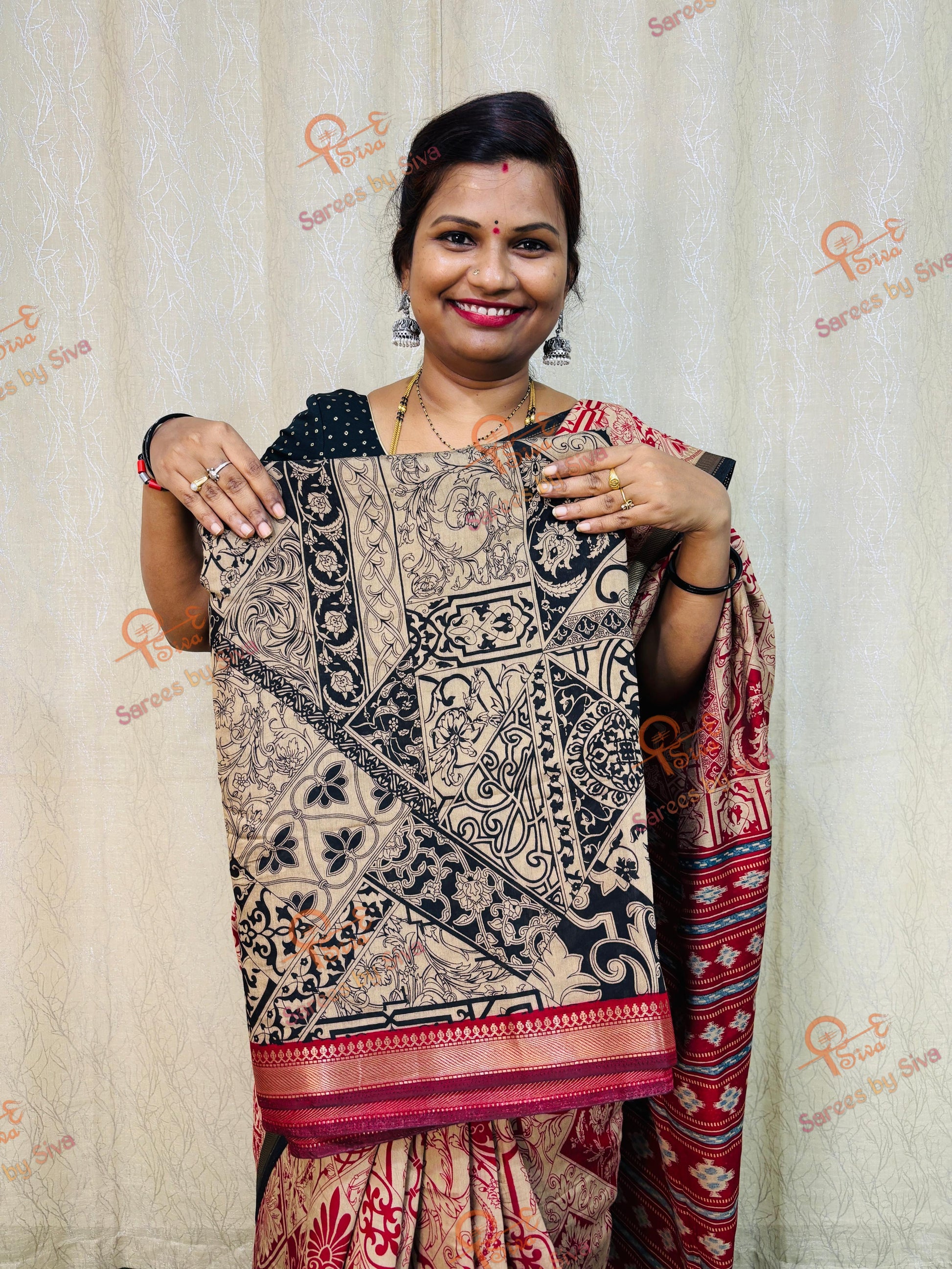 అజ్రాక్ ప్రింట్లతో కలంకారీ సిల్క్