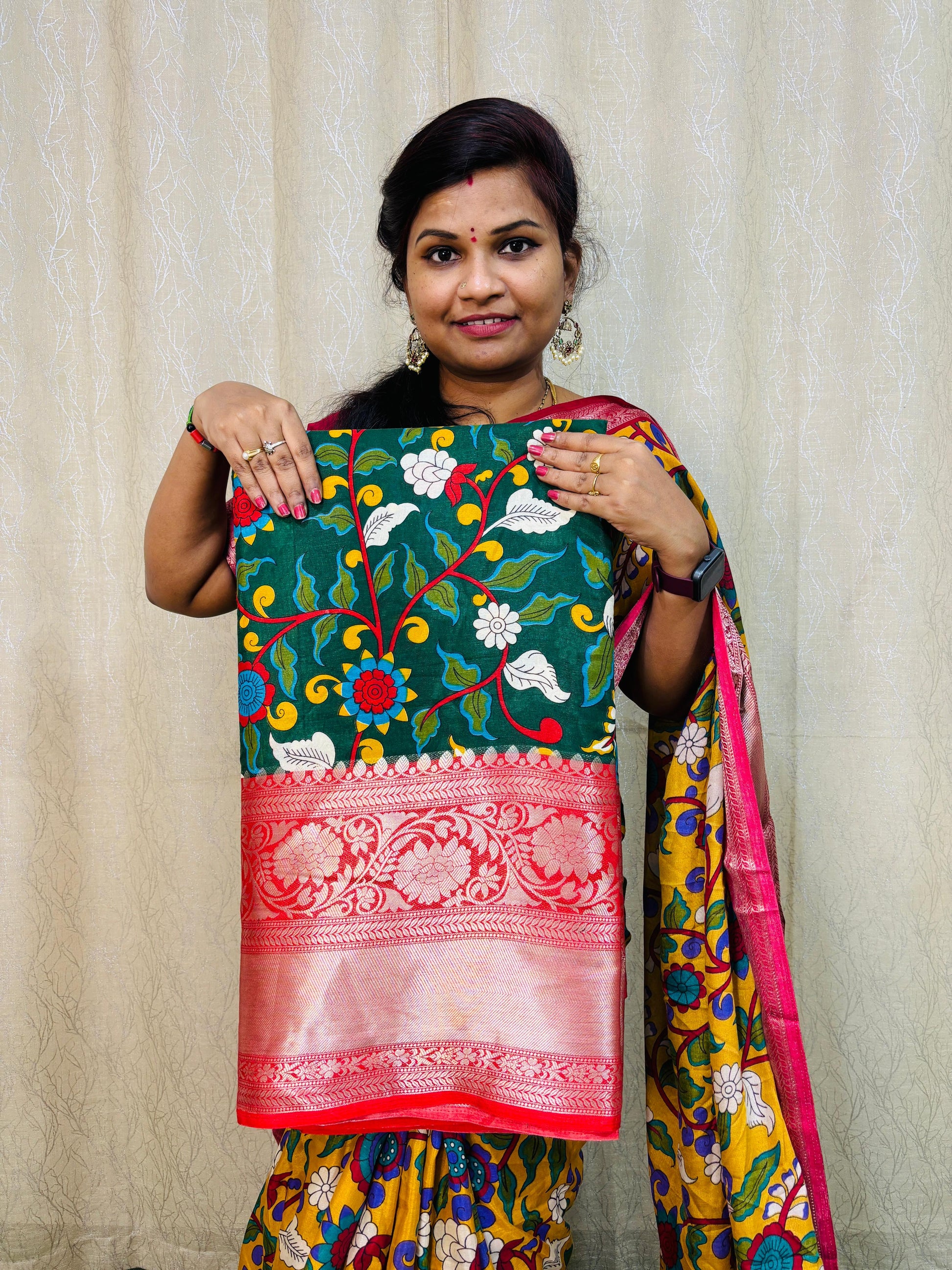 మా కొత్త కలెక్షన్ క్రేప్ కలాంకారి సిల్క్ చీరలతో అత్యున్నత చక్కదనాన్ని అనుభవించండి. క్లిష్టమైన జాక్వర్డ్ కాంచీ నేతలతో అలంకరించబడి, అద్భుతమైన కాంట్రాస్ట్ బ్లౌజ్తో జతచేయబడిన ఈ చీర మీ వార్డ్రోబ్కు ఒక అద్భుతమైన అదనంగా ఉంటుంది. ఇప్పుడు 850/- యొక్క సాటిలేని ధరకు అందుబాటులో ఉంది.