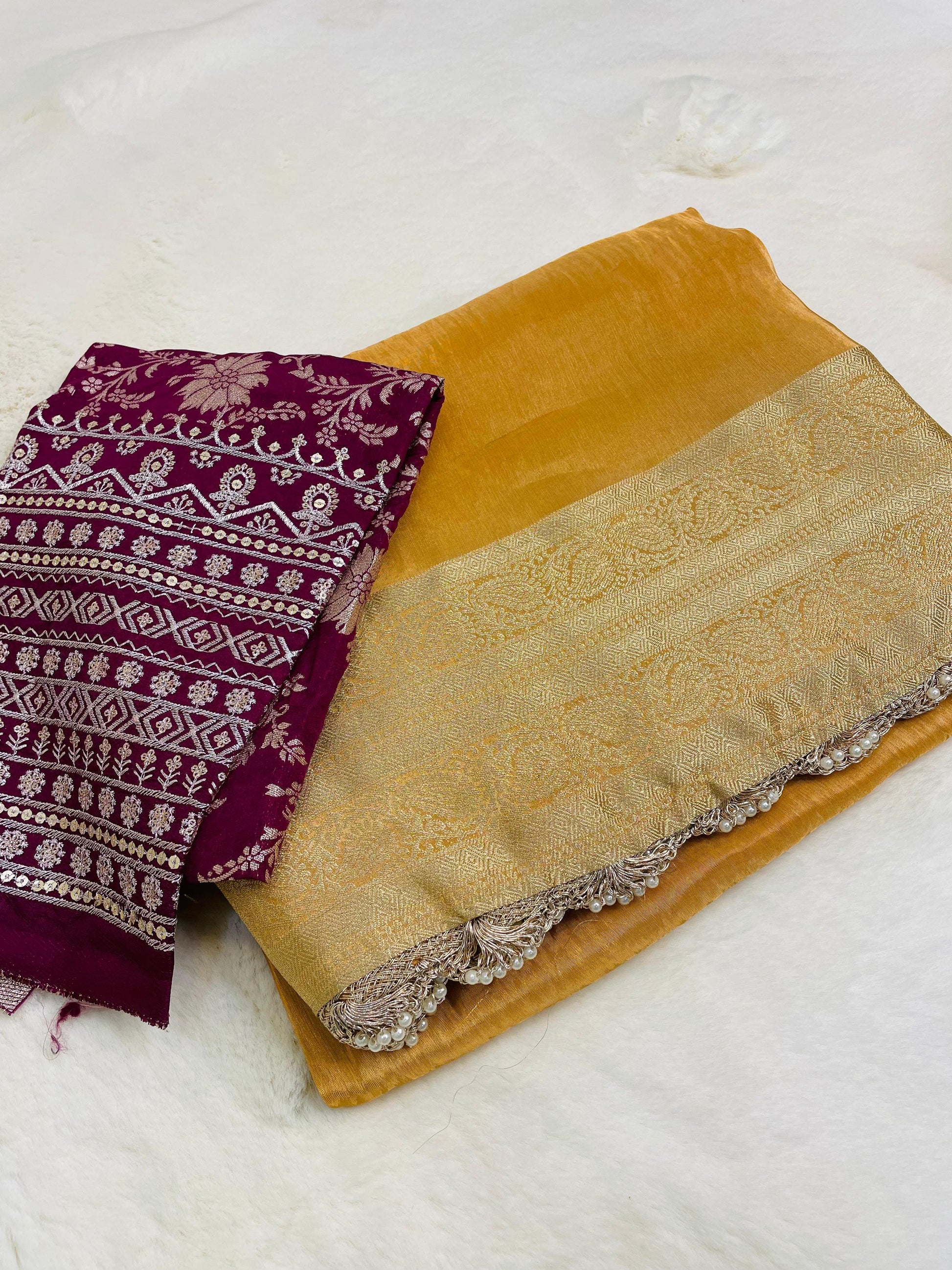 బనారసీ వర్క్ బ్లౌజ్తో ముడిపడి ఉంది