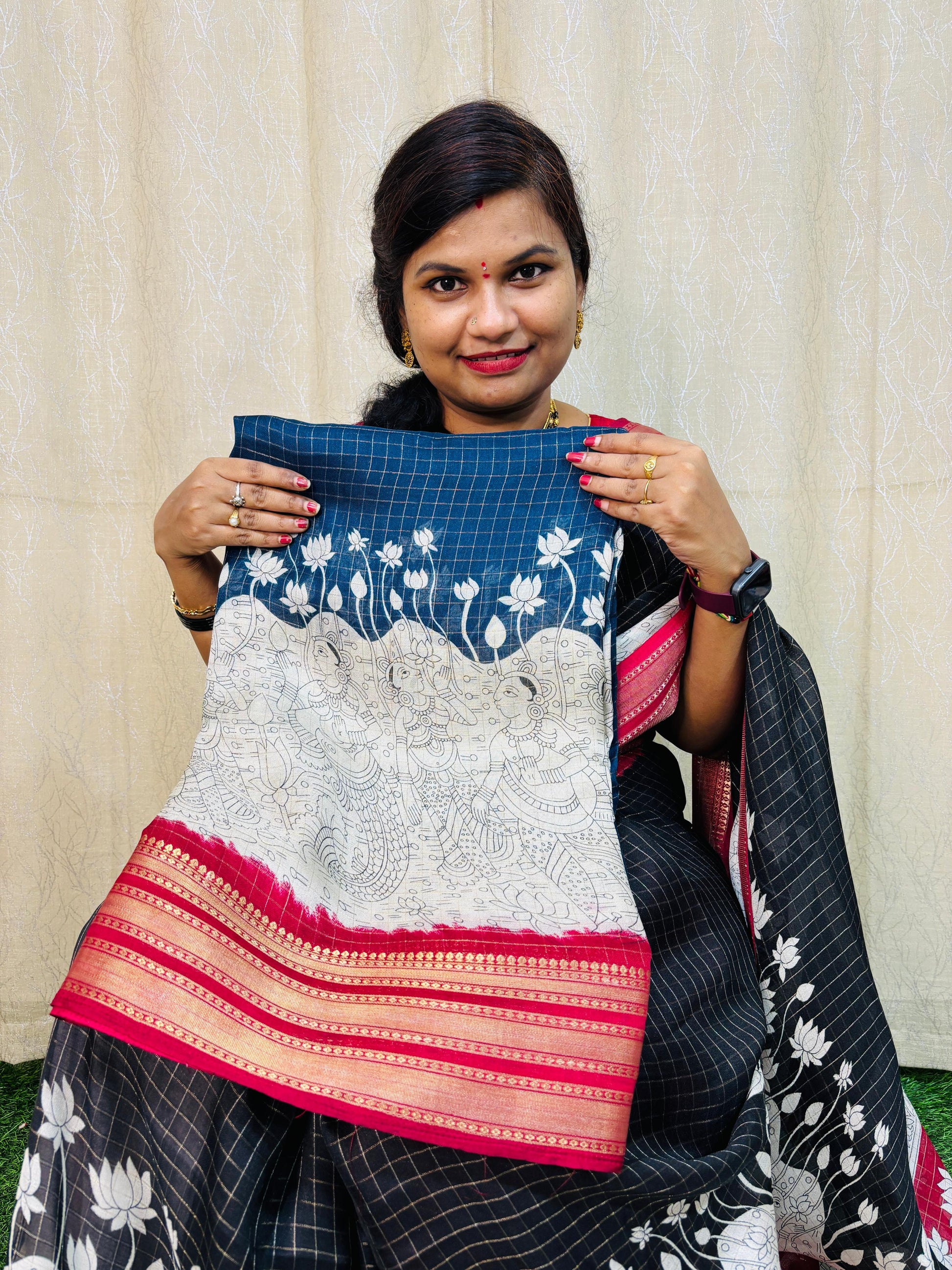ఈ అద్భుతమైన లెనిన్ కంచిలో క్లిష్టమైన కలంకారి రూపురేఖలు మరియు కాంట్రాస్ట్ బ్లౌజ్ ఉన్నాయి. 2D బోర్డర్ల అందంలో మరియు కంచి నేత యొక్క సాంప్రదాయ కళలో మునిగిపోండి. శైలి మరియు సంస్కృతిని సజావుగా మిళితం చేసే ఈ నైపుణ్యంగా రూపొందించిన ముక్కతో మీ వార్డ్రోబ్ను ఉన్నత స్థాయికి తీసుకెళ్లండి.
