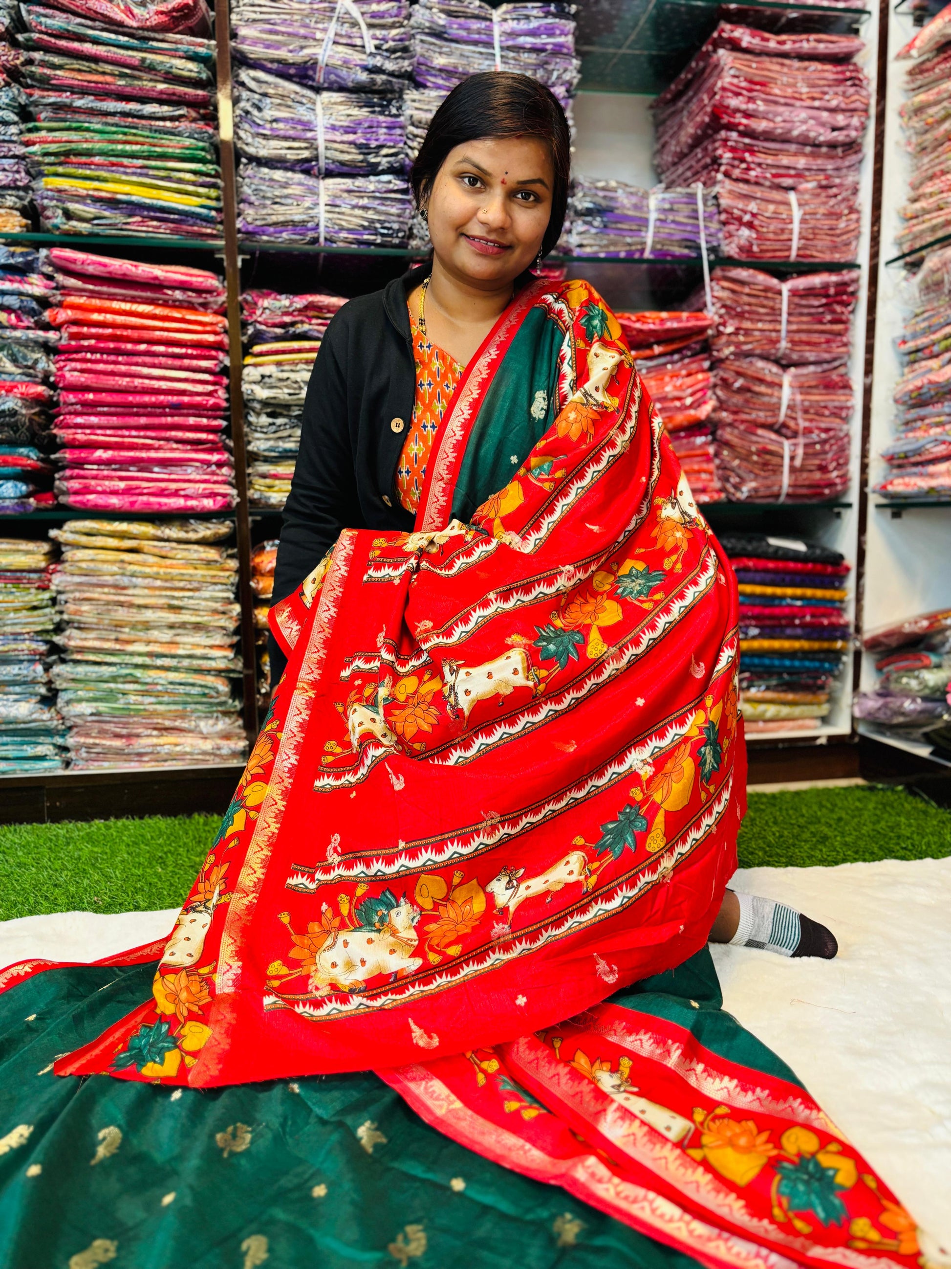 Experience the intricate beauty of traditional Indian art with our Mangalagiri Kanchi Pichwai. This handcrafted piece showcases the rich history and culture of India through its intricate design and vibrant colors. Made from high-quality materials, it is a perfect addition to any home or office space.