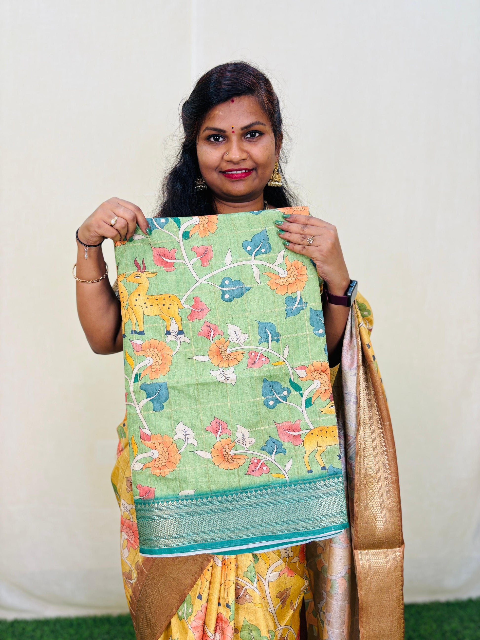 These Mangalagiri Pattu Sarees showcase exquisite Kalamkari weavings, adding a unique touch to the traditional silk sarees. Expertly crafted, these sarees are perfect for any occasion. Elevate your wardrobe and feel confident in the rich cultural heritage and craftsmanship of these sarees.