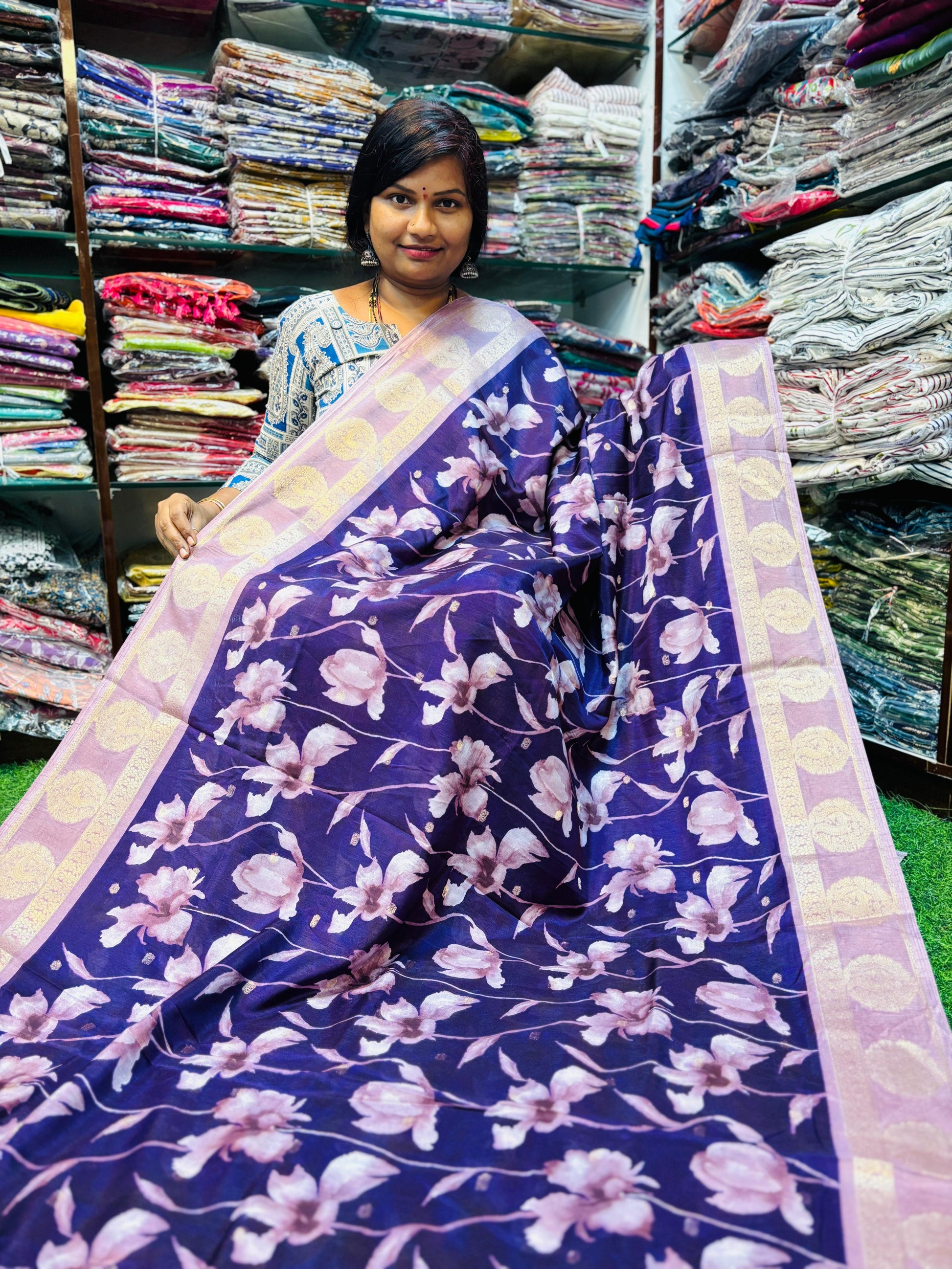 Experience the beauty of traditional Mangalagiri peacock borders with a modern twist. These borders are digitally highlighted with floral designs for an elegant touch. Made with high-quality materials, this product is a perfect addition to your ethnic wardrobe. Upgrade your style game with these exquisite borders. Price at 880/-.