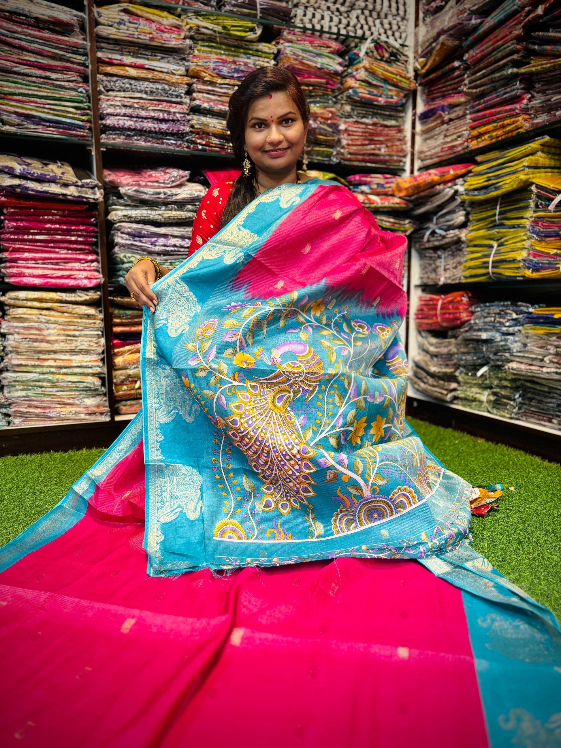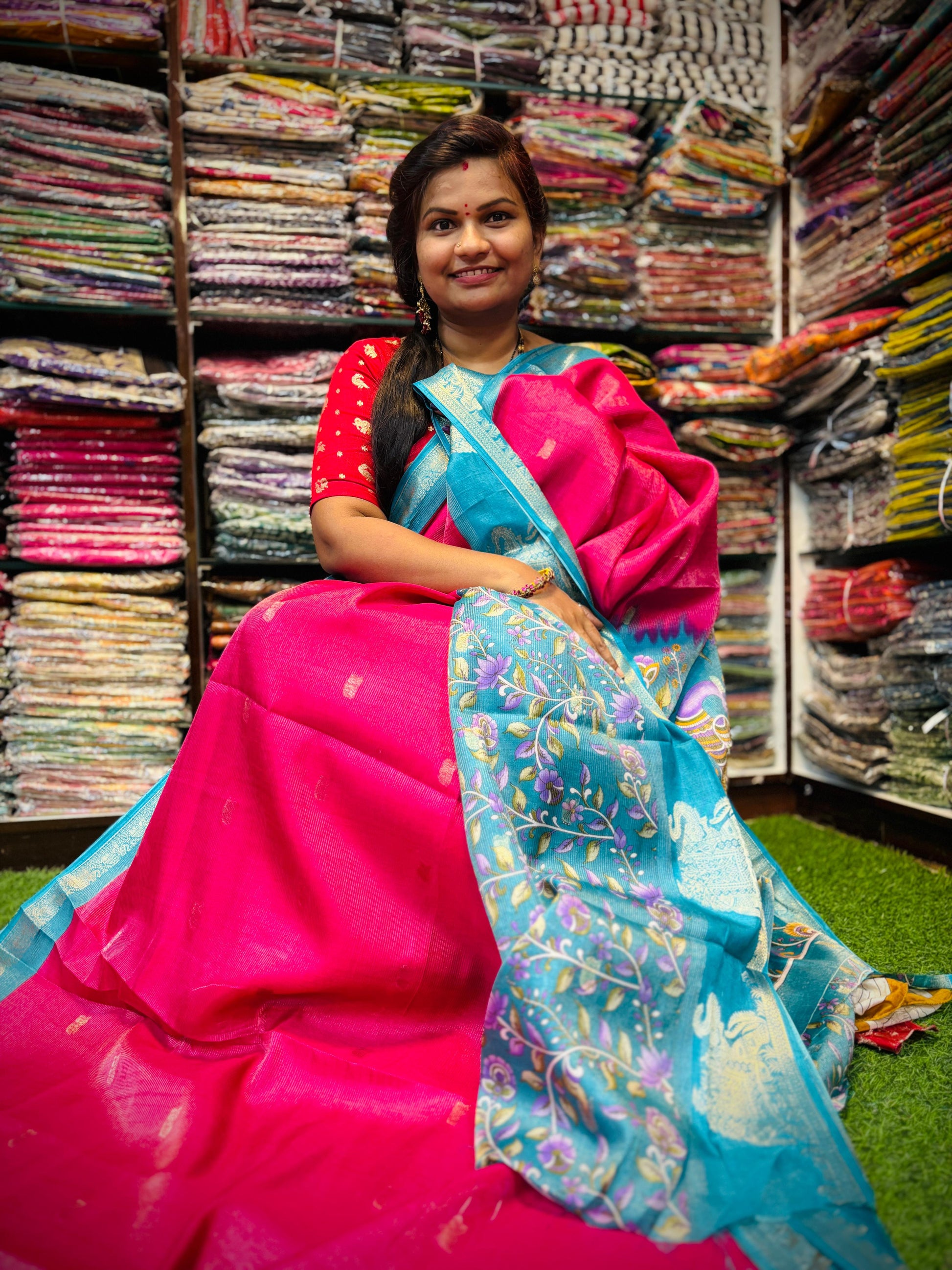 Expertly crafted with traditional Mangalagiri and uppada techniques, this tissue Pattu saree is a timeless addition to any wardrobe. Its luxurious feel and intricate design showcase the expert craftsmanship, making it a must-have for all occasions. Available for only 780/-, get yours today and elevate your style game.