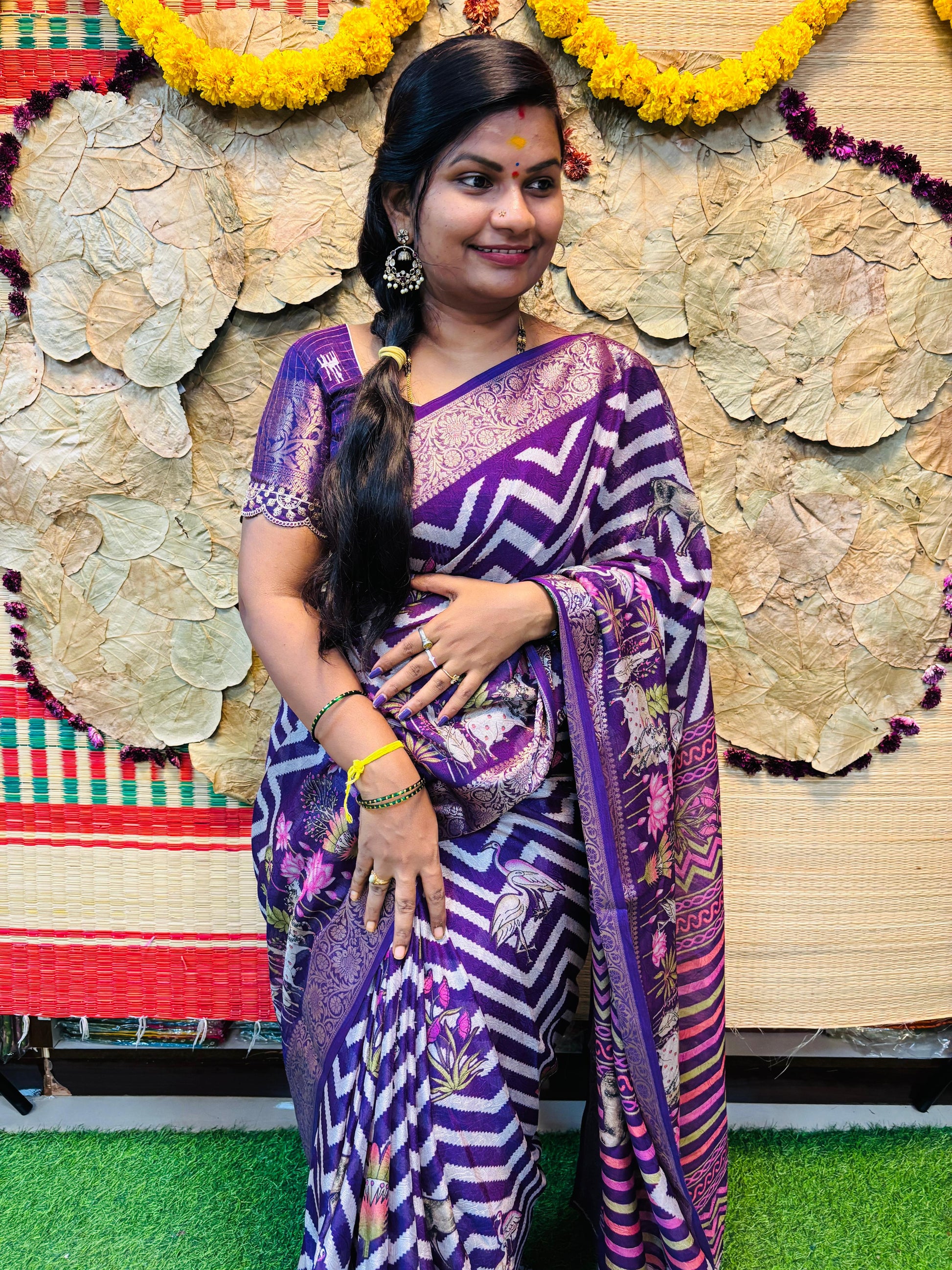 Discover the beauty and tradition of Marshmallow Lehariya Patterns sarees, enhanced by delicate Pichwai borders. Immerse yourself in colorful and intricate patterns that truly showcase the artistry of Indian culture. Elevate your wardrobe with this stunning and timeless piece.