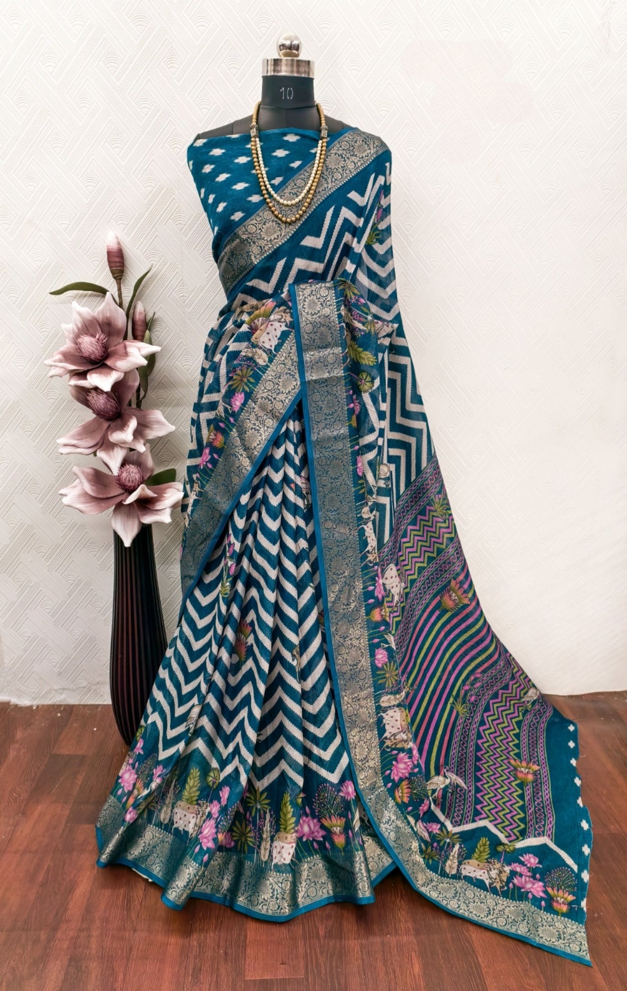Discover the beauty and tradition of Marshmallow Lehariya Patterns sarees, enhanced by delicate Pichwai borders. Immerse yourself in colorful and intricate patterns that truly showcase the artistry of Indian culture. Elevate your wardrobe with this stunning and timeless piece.