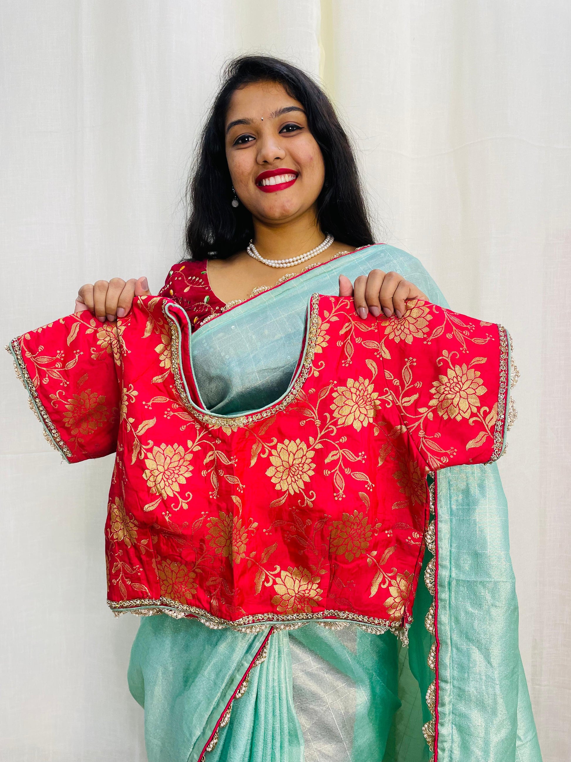 🦋🦋 లేస్ వర్క్తో కూడిన రిచ్ బనారసీ బ్లౌజ్