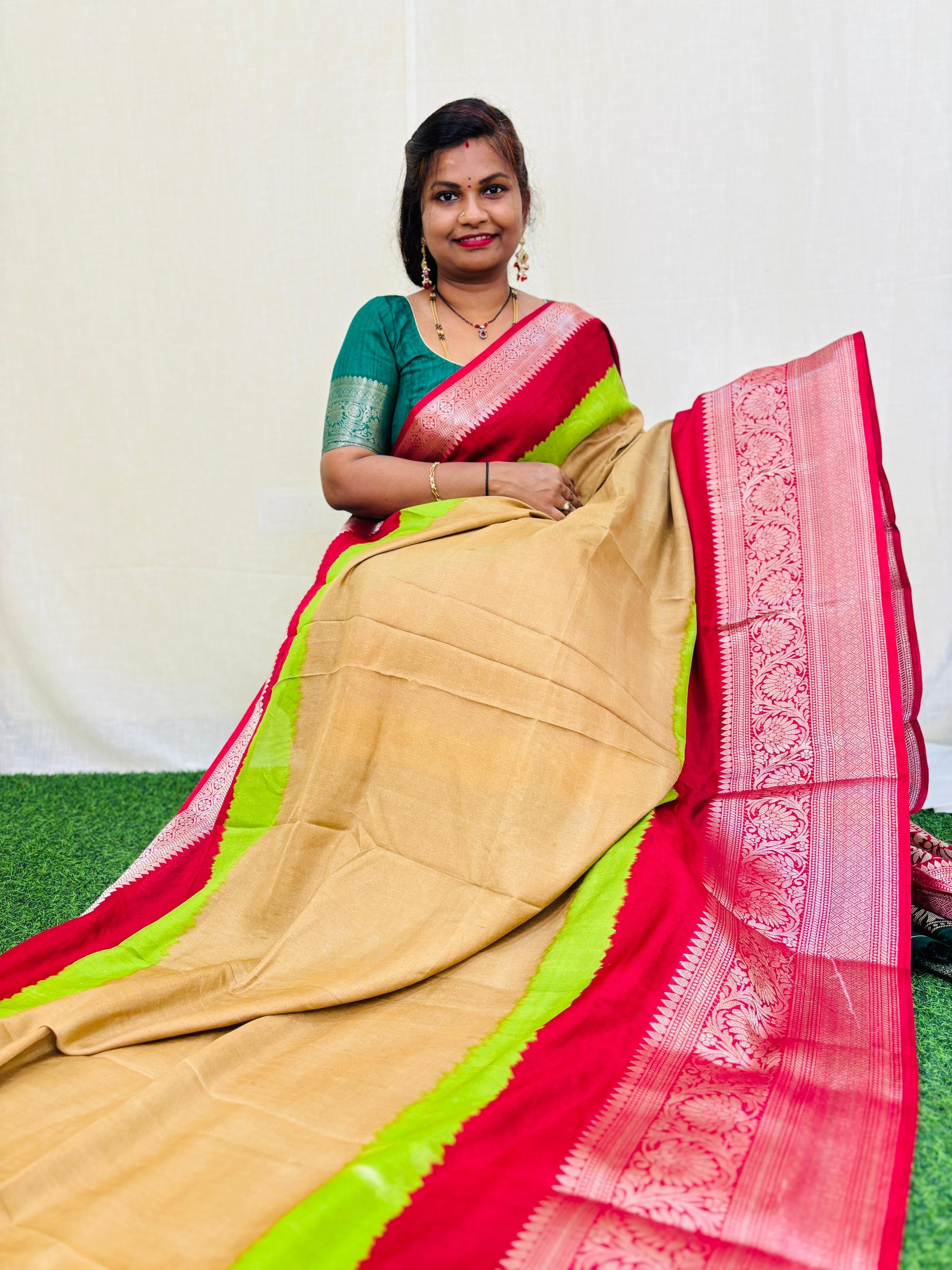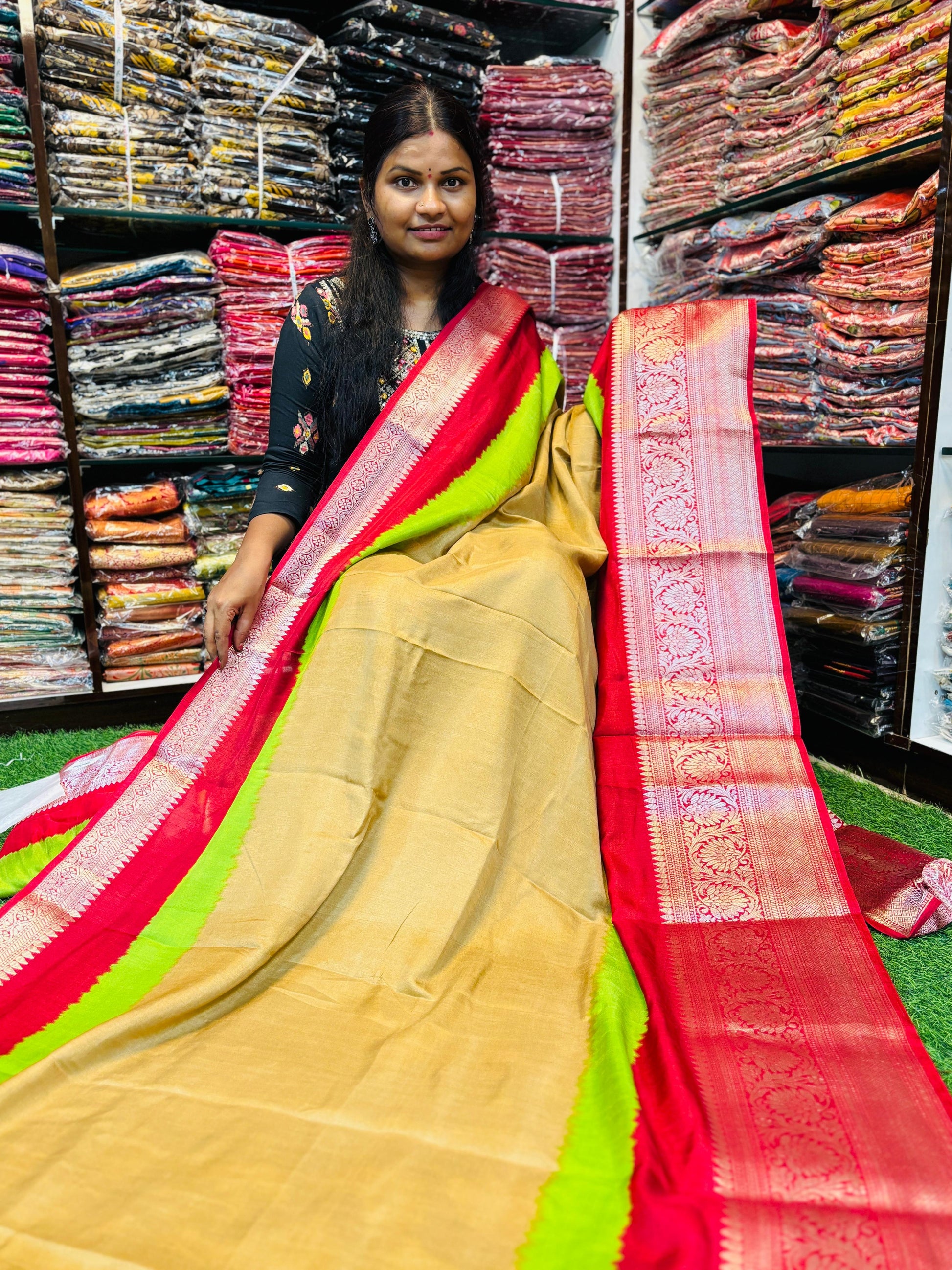 Experience the traditional elegance of Multi Dola sarees, featuring exquisite Banarasi Kanchi weavings. With a timeless design and expert craftsmanship, these sarees offer both style and quality. Elevate your wardrobe with the perfect blend of tradition and modernity.