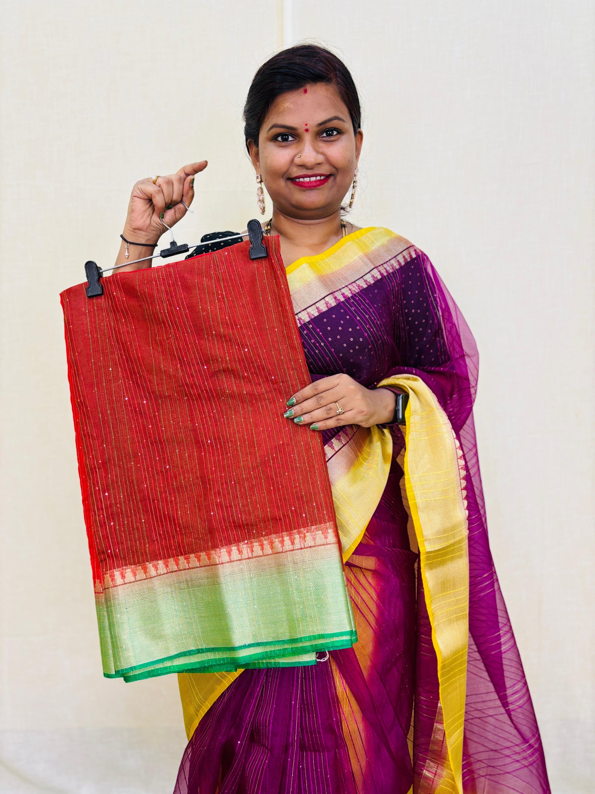 These organza sarees with sequence add a touch of elegance and sparkle to any occasion. Made with lightweight and breathable organza fabric, these sarees provide both comfort and style. The intricate sequence detailing adds a subtle shimmer, making these sarees the perfect choice for special events.