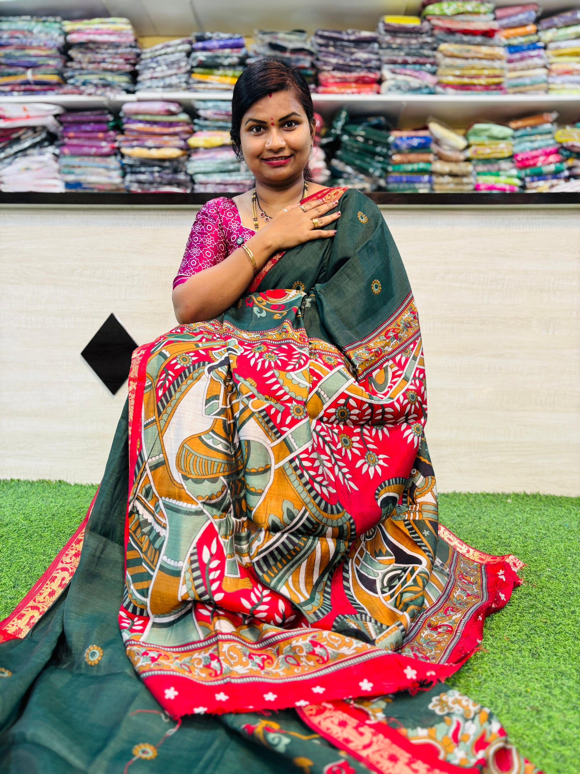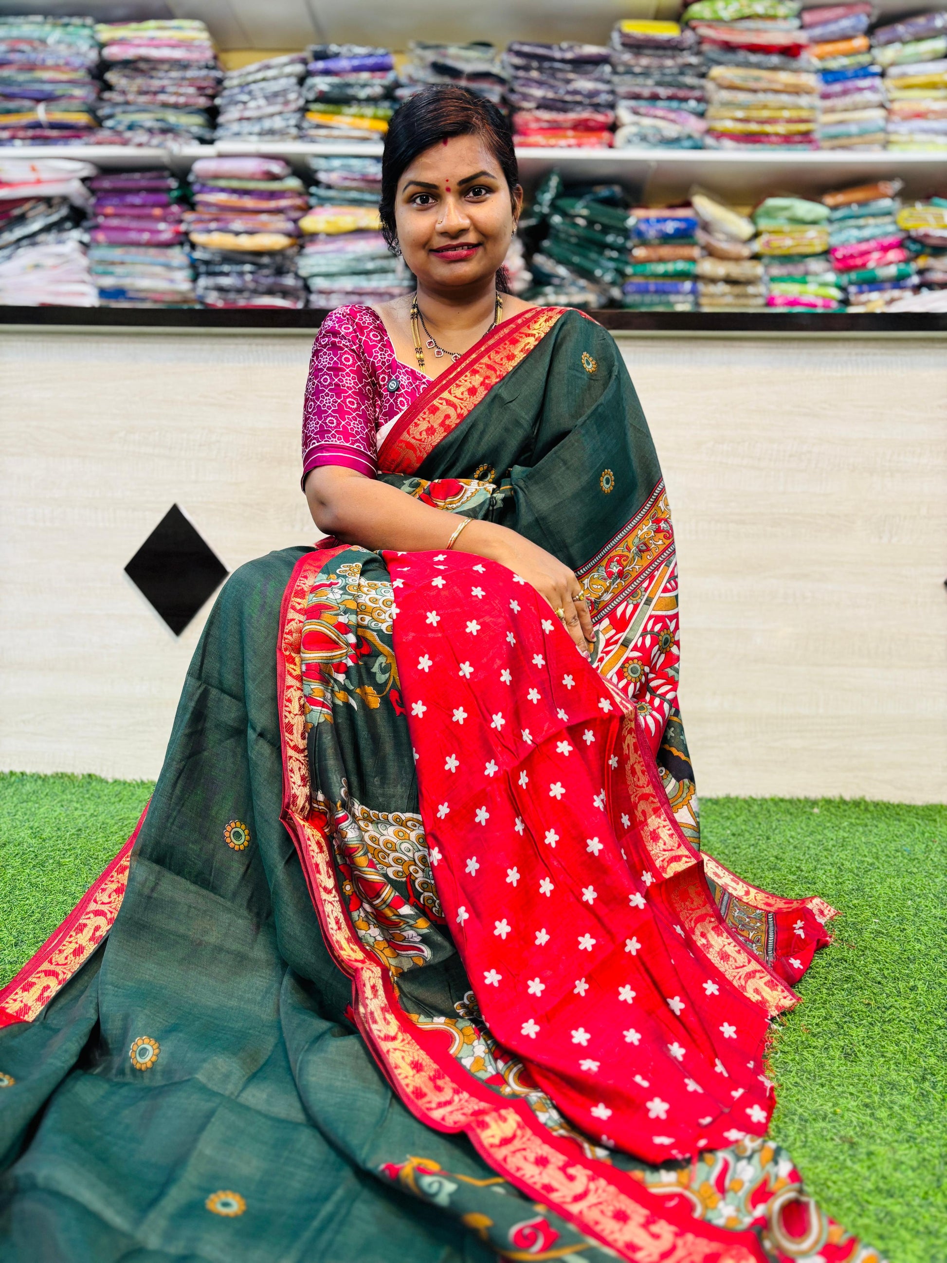 Enhance your wardrobe with our high-quality Premium Peacock Maheshwari Silk Saree . This traditional saree is both elegant and durable, perfect for any occasion. The contrasting blouse adds a touch of sophistication to the overall look. Upgrade your style with this premium product.