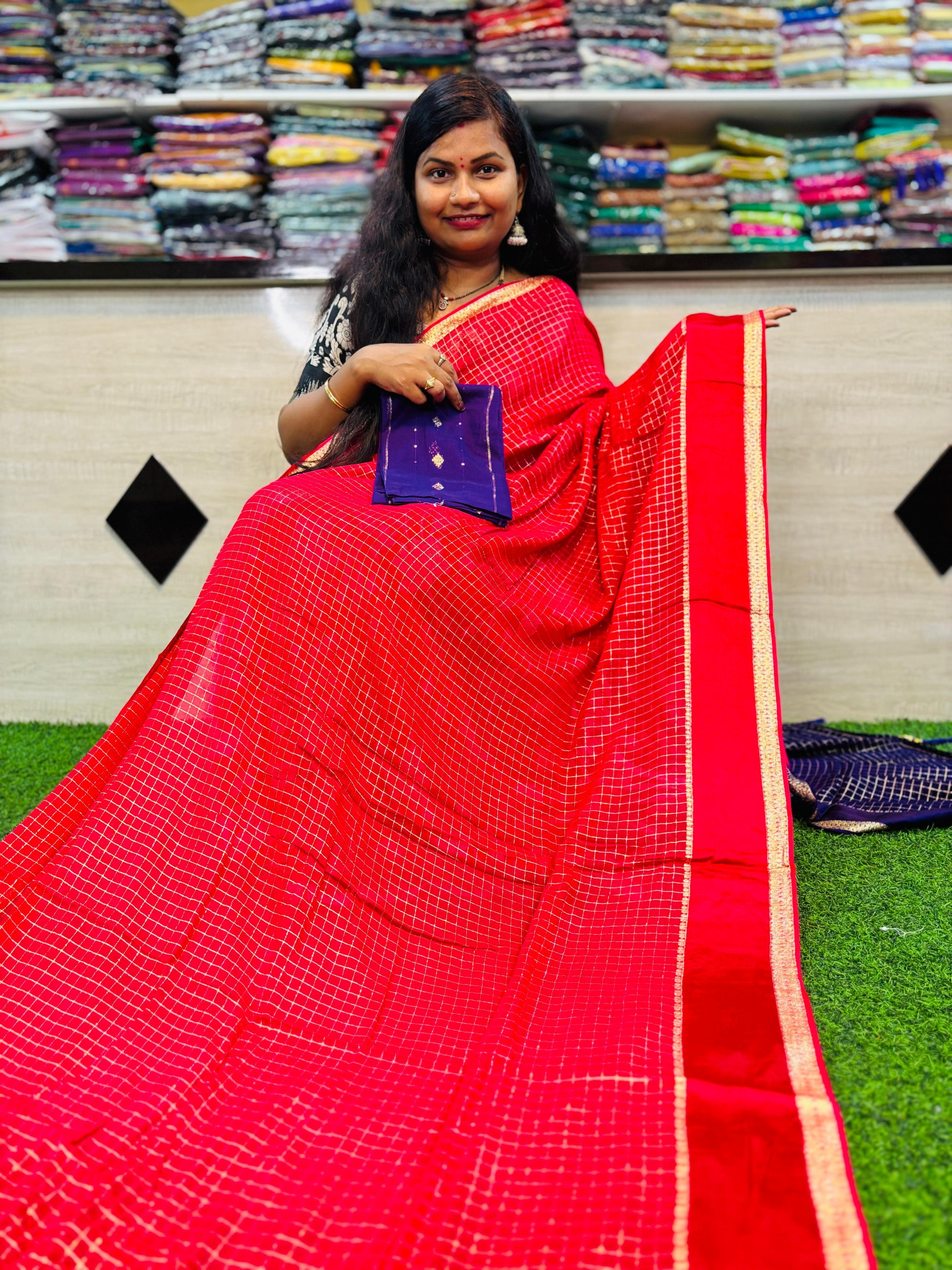 Expertly crafted with premium quality Viscose Georgette, this saree comes with a striking contrast pallu and blouse. Elevate your style with the classy Tussels and experience the luxurious feel of this fabric. Perfect for any occasion, this saree offers both comfort and sophistication.