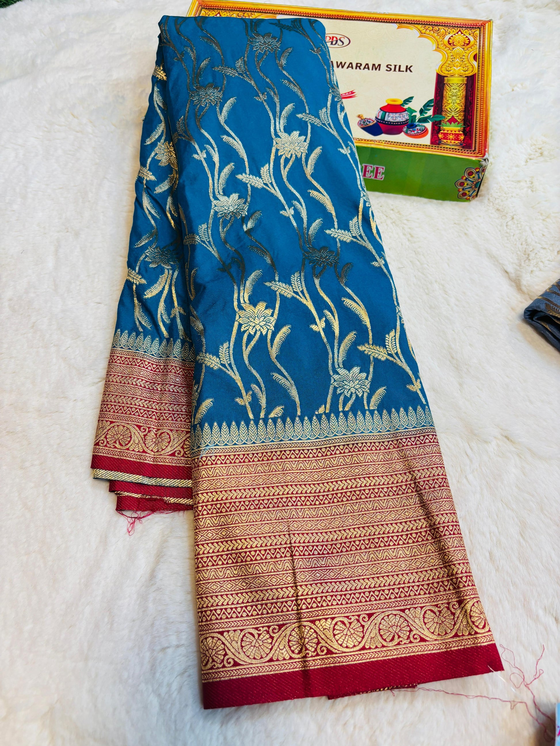 Raw Mango Pattu saree boasts exquisite all-over weavings, adding a touch of opulence to its timeless design. Handcrafted with precision, it offers a luxurious drape and is sure to make a statement at any occasion. Elevate your wardrobe with this high-quality, traditional garment.
