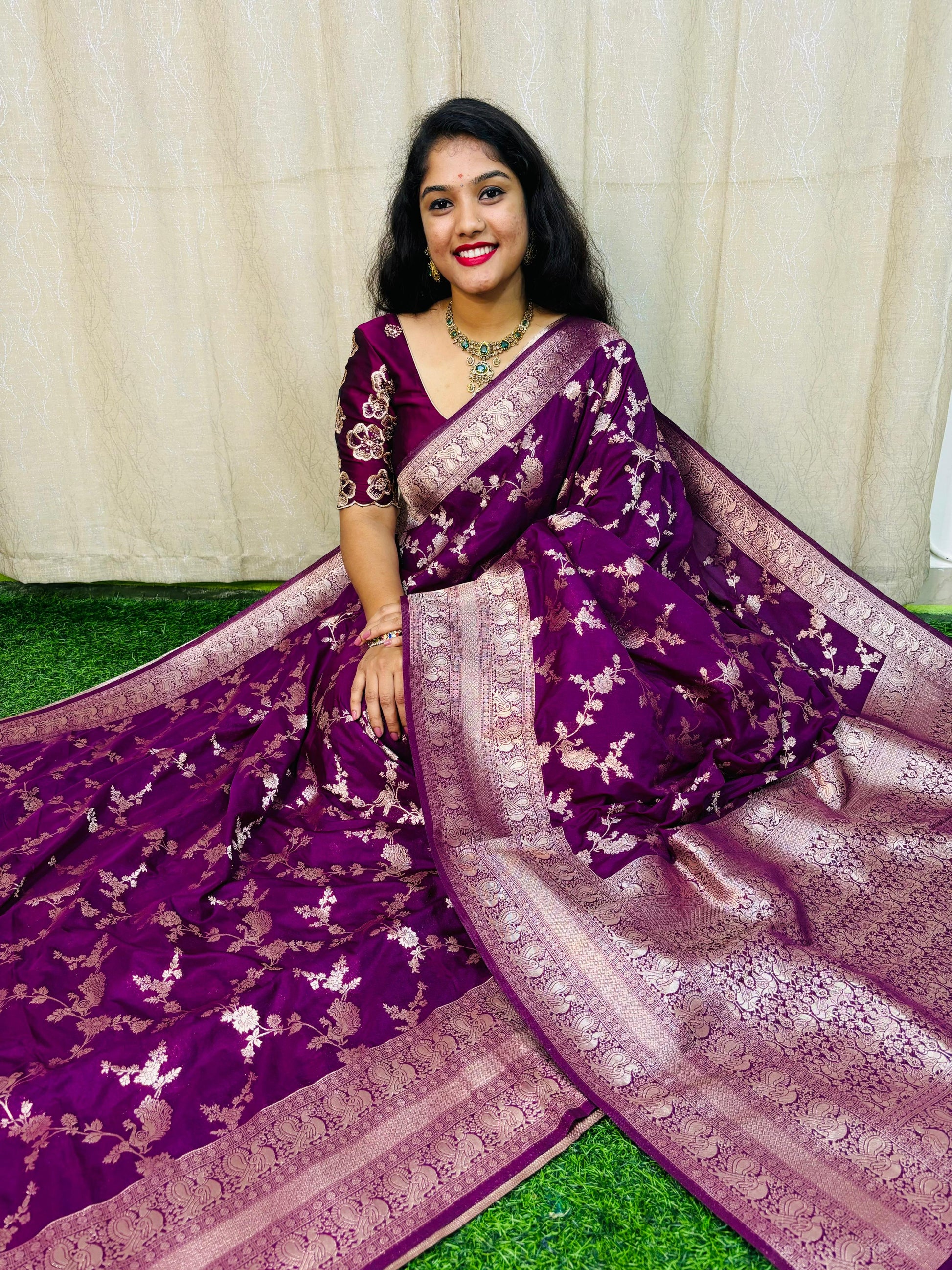 సెమీ బనారసి పట్టు చీరలు అల్లోవర్ పూల నేయడం