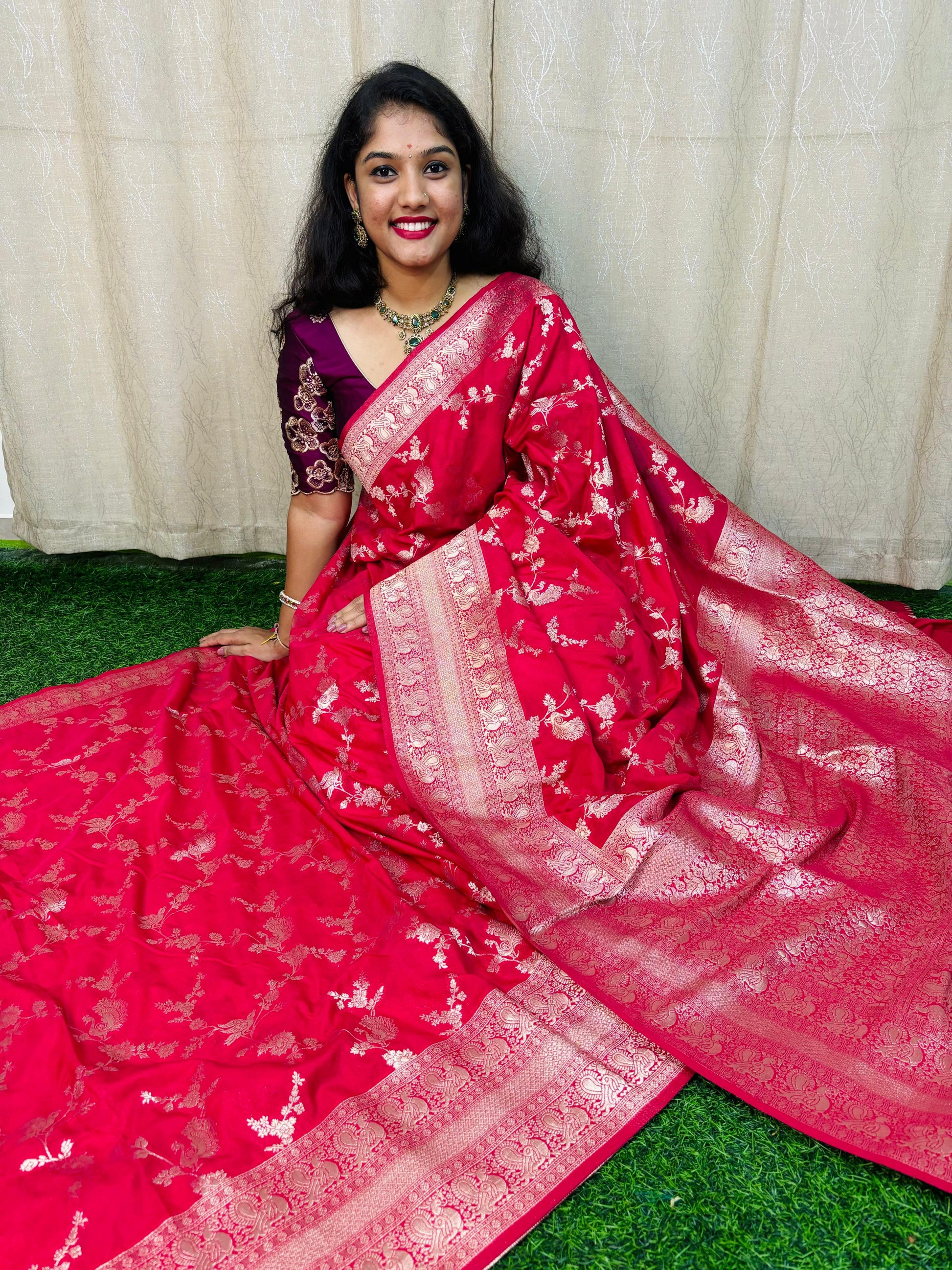 సెమీ బనారసి పట్టు చీరలు అల్లోవర్ పూల నేయడం