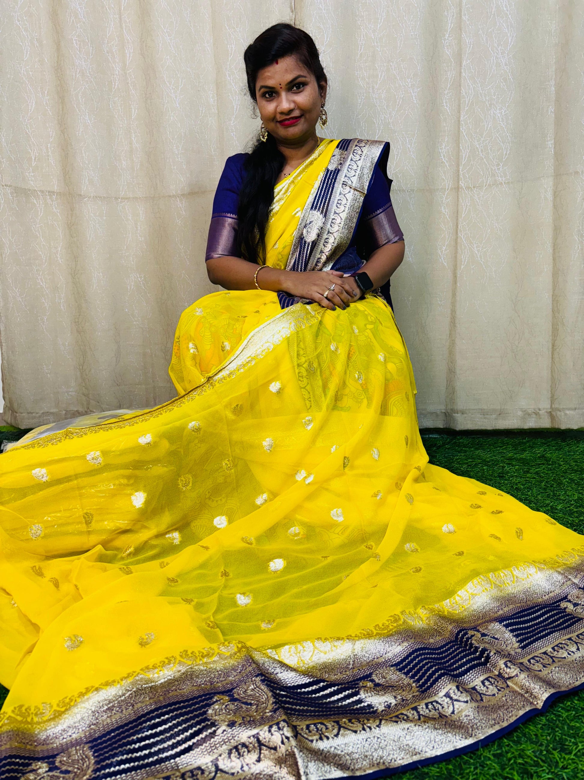 కాంట్రాస్ట్ బార్డర్లతో సెమీ ఖడ్డీ జార్జెట్ చీరలు