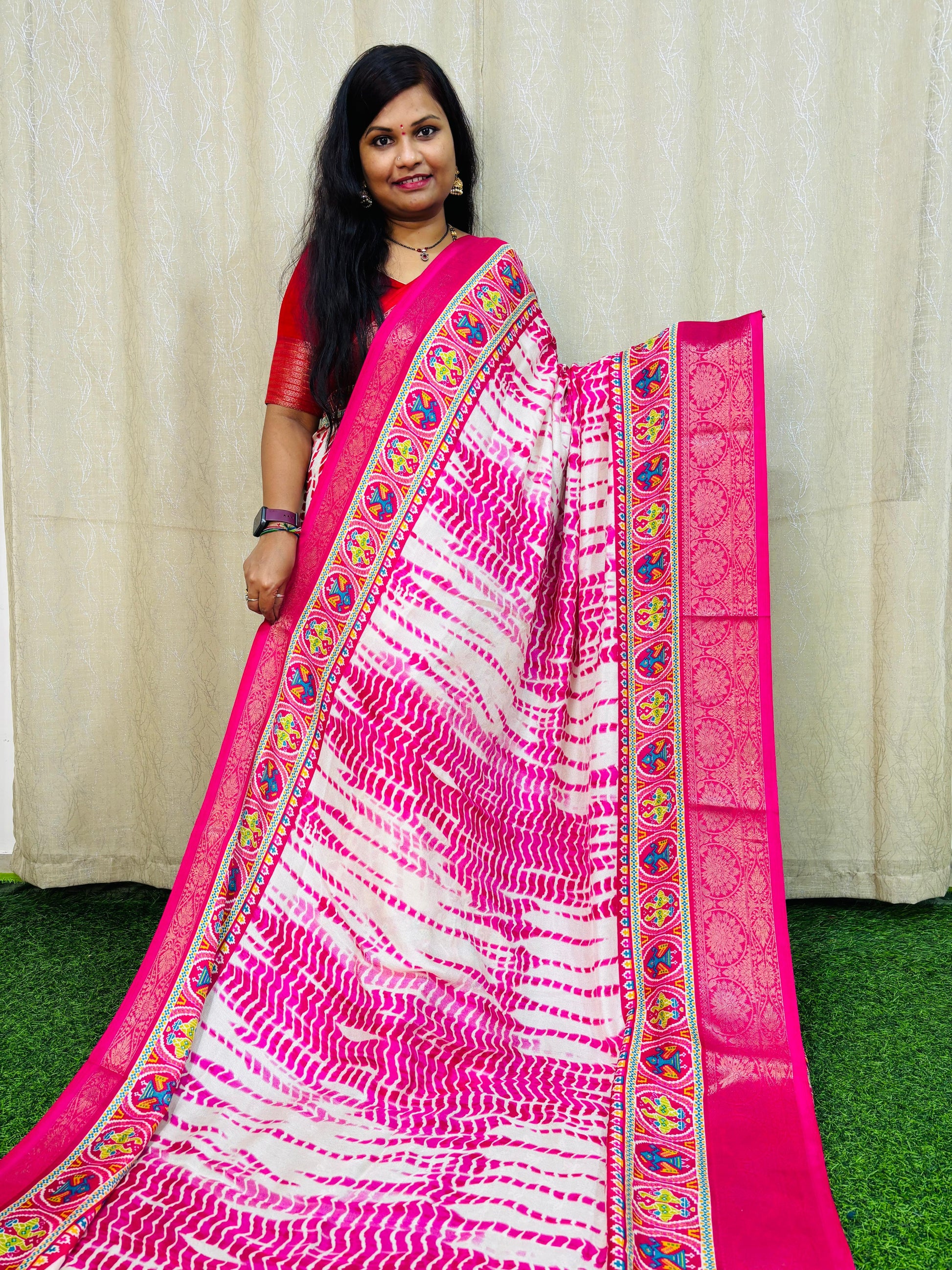 సిబ్బోరి టై అండ్ డై చీరలతో మీ వార్డ్రోబ్కు సంప్రదాయం మరియు చక్కదనం యొక్క స్పర్శను జోడించండి. ఈ చీరలు ప్రత్యేకమైన కలంకారీ బ్లౌజ్లను కలిగి ఉంటాయి, క్లాసిక్ డిజైన్కు శక్తివంతమైన రంగుల జోడింపును జోడిస్తాయి. అధిక-నాణ్యత మెటీరియల్తో తయారు చేయబడిన ఈ చీరలు ఏ సందర్భానికైనా సరైనవి. సిబ్బోరి టై అండ్ డైతో స్టైల్గా బయటకు రండి.