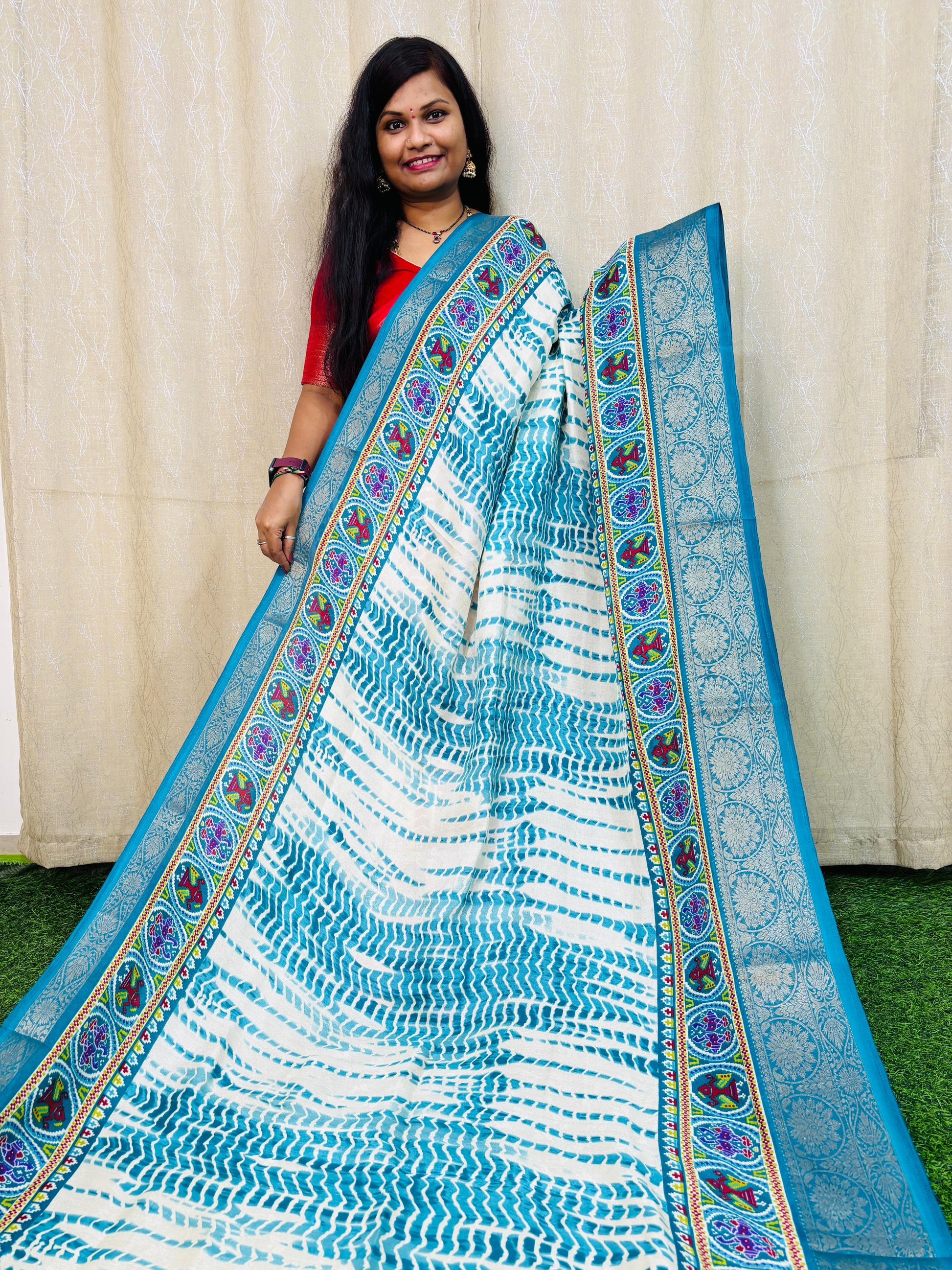 సిబ్బోరి టై అండ్ డై చీరలతో మీ వార్డ్రోబ్కు సంప్రదాయం మరియు చక్కదనం యొక్క స్పర్శను జోడించండి. ఈ చీరలు ప్రత్యేకమైన కలంకారీ బ్లౌజ్లను కలిగి ఉంటాయి, క్లాసిక్ డిజైన్కు శక్తివంతమైన రంగుల జోడింపును జోడిస్తాయి. అధిక-నాణ్యత మెటీరియల్తో తయారు చేయబడిన ఈ చీరలు ఏ సందర్భానికైనా సరైనవి. సిబ్బోరి టై అండ్ డైతో స్టైల్గా బయటకు రండి.