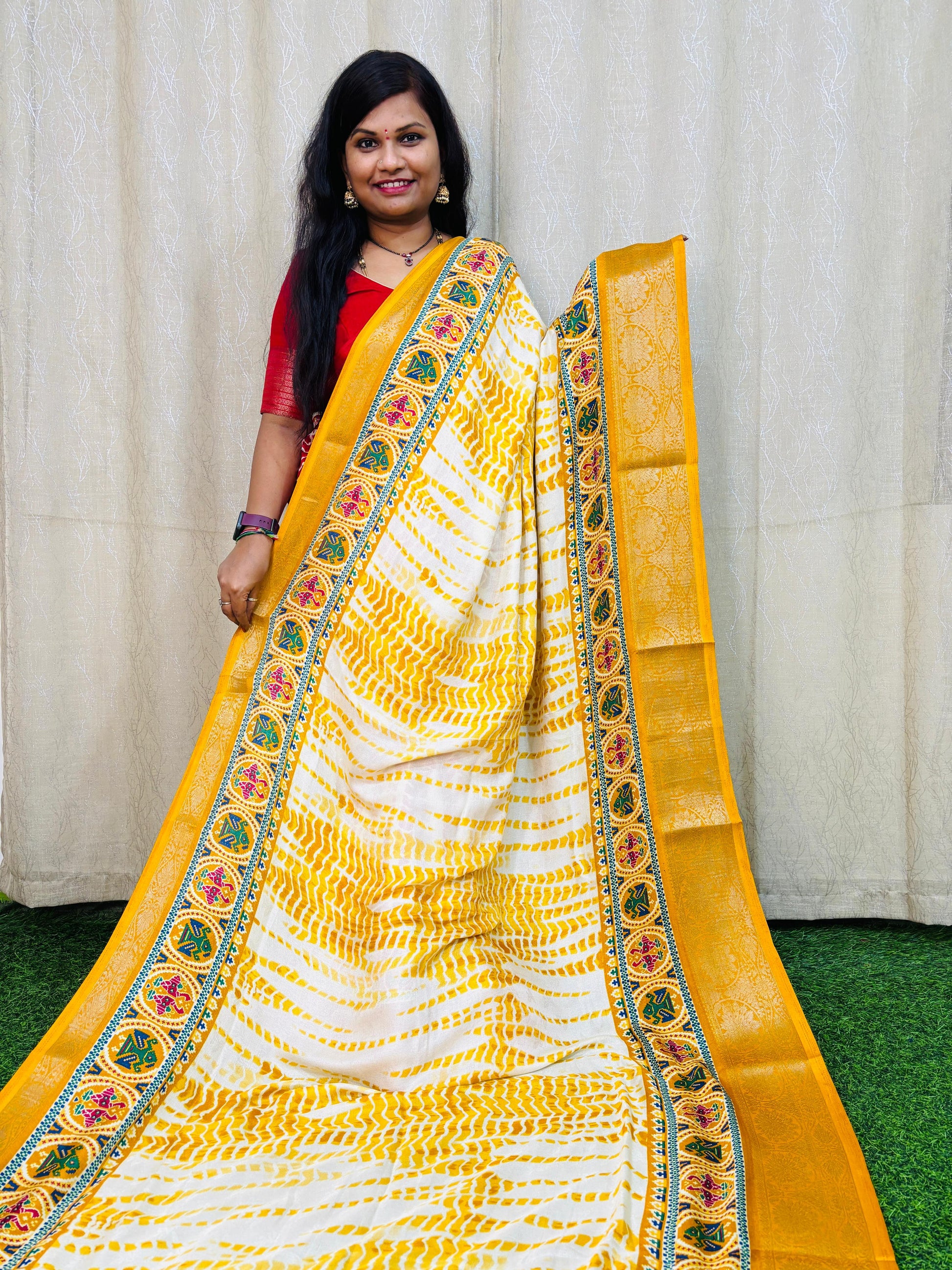 సిబ్బోరి టై అండ్ డై చీరలతో మీ వార్డ్రోబ్కు సంప్రదాయం మరియు చక్కదనం యొక్క స్పర్శను జోడించండి. ఈ చీరలు ప్రత్యేకమైన కలంకారీ బ్లౌజ్లను కలిగి ఉంటాయి, క్లాసిక్ డిజైన్కు శక్తివంతమైన రంగుల జోడింపును జోడిస్తాయి. అధిక-నాణ్యత మెటీరియల్తో తయారు చేయబడిన ఈ చీరలు ఏ సందర్భానికైనా సరైనవి. సిబ్బోరి టై అండ్ డైతో స్టైల్గా బయటకు రండి.