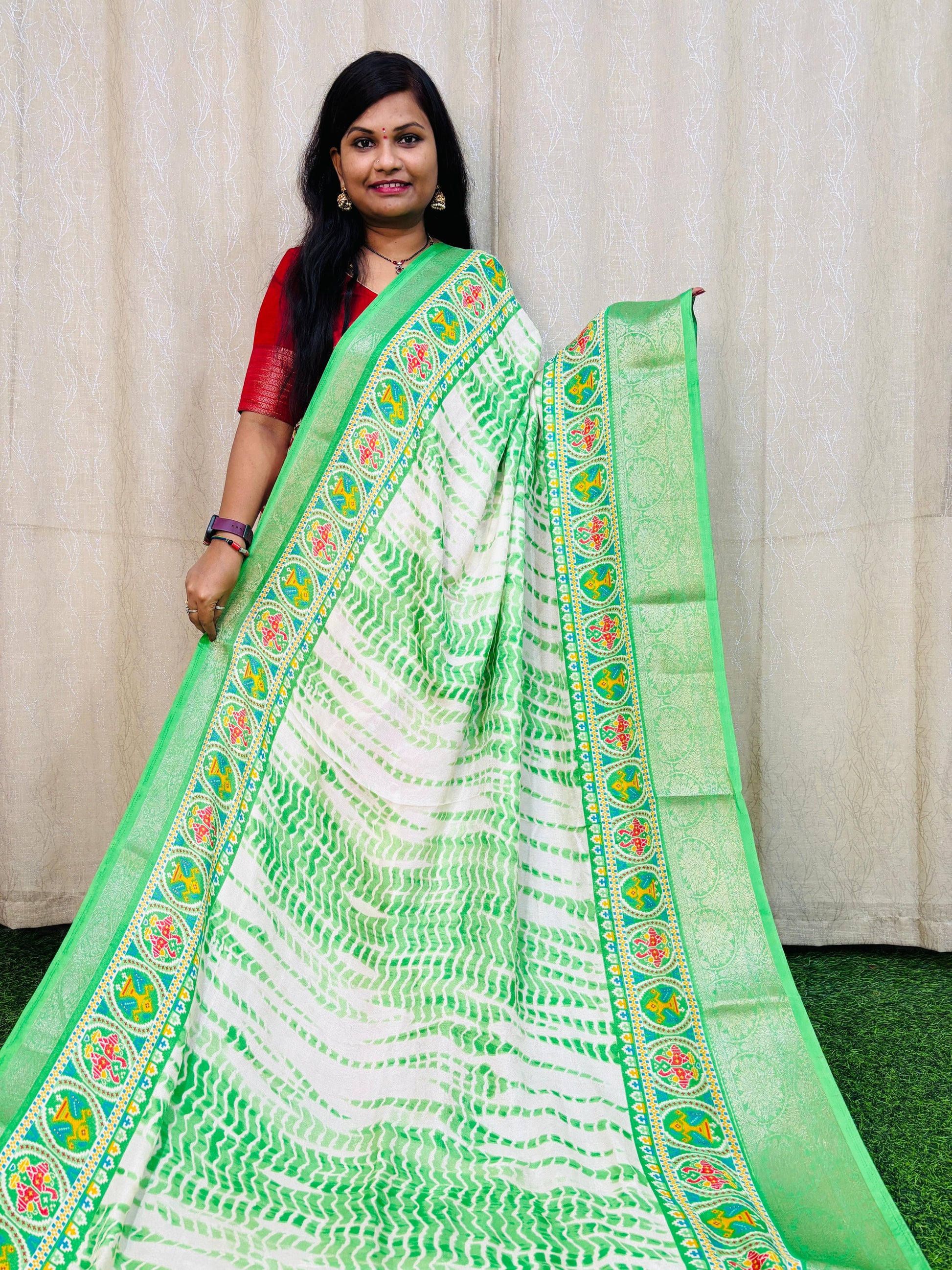 సిబ్బోరి టై అండ్ డై చీరలతో మీ వార్డ్రోబ్కు సంప్రదాయం మరియు చక్కదనం యొక్క స్పర్శను జోడించండి. ఈ చీరలు ప్రత్యేకమైన కలంకారీ బ్లౌజ్లను కలిగి ఉంటాయి, క్లాసిక్ డిజైన్కు శక్తివంతమైన రంగుల జోడింపును జోడిస్తాయి. అధిక-నాణ్యత మెటీరియల్తో తయారు చేయబడిన ఈ చీరలు ఏ సందర్భానికైనా సరైనవి. సిబ్బోరి టై అండ్ డైతో స్టైల్గా బయటకు రండి.
