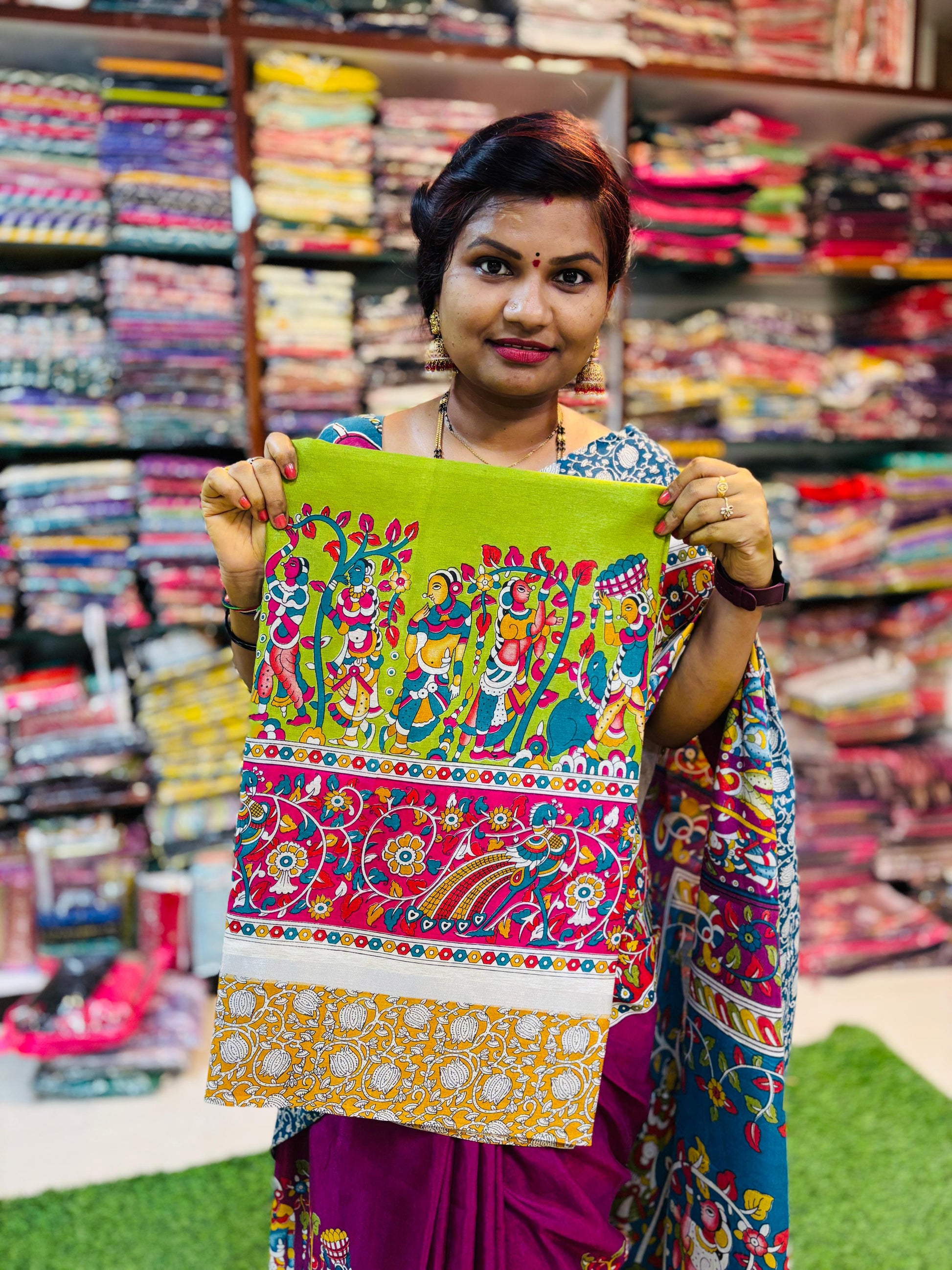 సాఫ్ట్ ముల్ కాటన్లు అనేవి నైపుణ్యంగా రూపొందించిన తేలికైన చీరల సేకరణ, ఇవి మీ చర్మంపై మృదువైన మరియు సౌకర్యవంతమైన అనుభూతిని కలిగించడానికి అత్యుత్తమ పదార్థాలతో తయారు చేయబడ్డాయి. కలాంకారి డబుల్ బార్డర్లతో హైలైట్ చేయబడిన చిన్న జరీ బార్డర్లు, కాంట్రాస్ట్ బ్లౌజ్ మరియు రిచ్ పల్లుకు చక్కదనాన్ని జోడిస్తాయి. ఏ సందర్భానికైనా పర్ఫెక్ట్, ప్రతి సెట్ కేవలం 699/- సరసమైన ధరకు లభిస్తుంది.