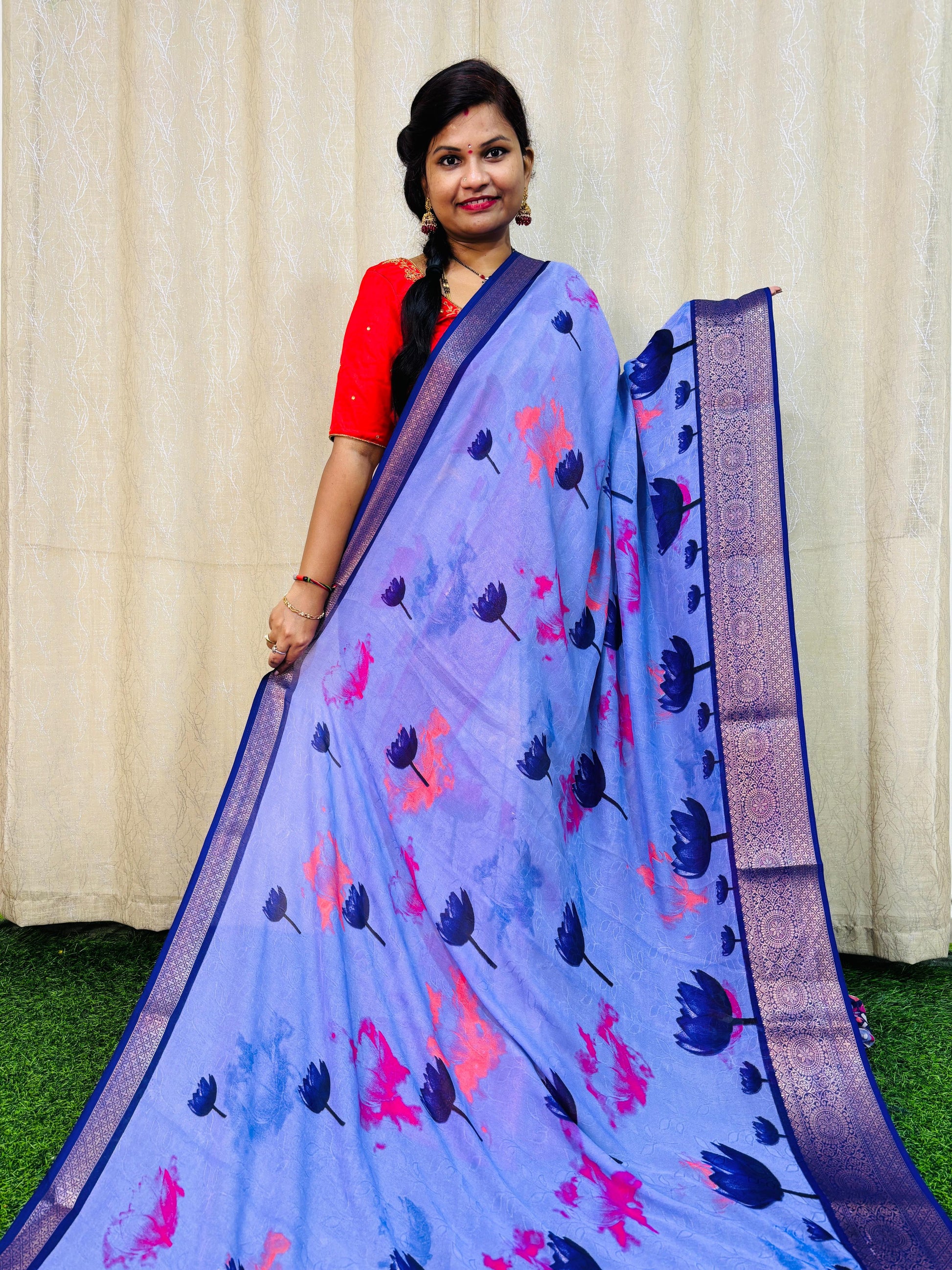 మా టై అండ్ డై షిఫాన్ జార్జెట్స్ చీరతో మీ శైలిని మరింత అందంగా తీర్చిదిద్దుకోండి. అద్భుతమైన లోటస్ పిచ్వై డిజైన్ మరియు గొప్ప కలంకారి పల్లుతో కూడిన ఈ చీర ఏ సందర్భానికైనా సరైనది. అధిక-నాణ్యత పదార్థాలతో తయారు చేయబడిన ఇది చక్కదనం మరియు సౌకర్యాన్ని అందిస్తుంది. మరియు కేవలం 950/- వద్ద, ఇది అజేయమైన విలువ.