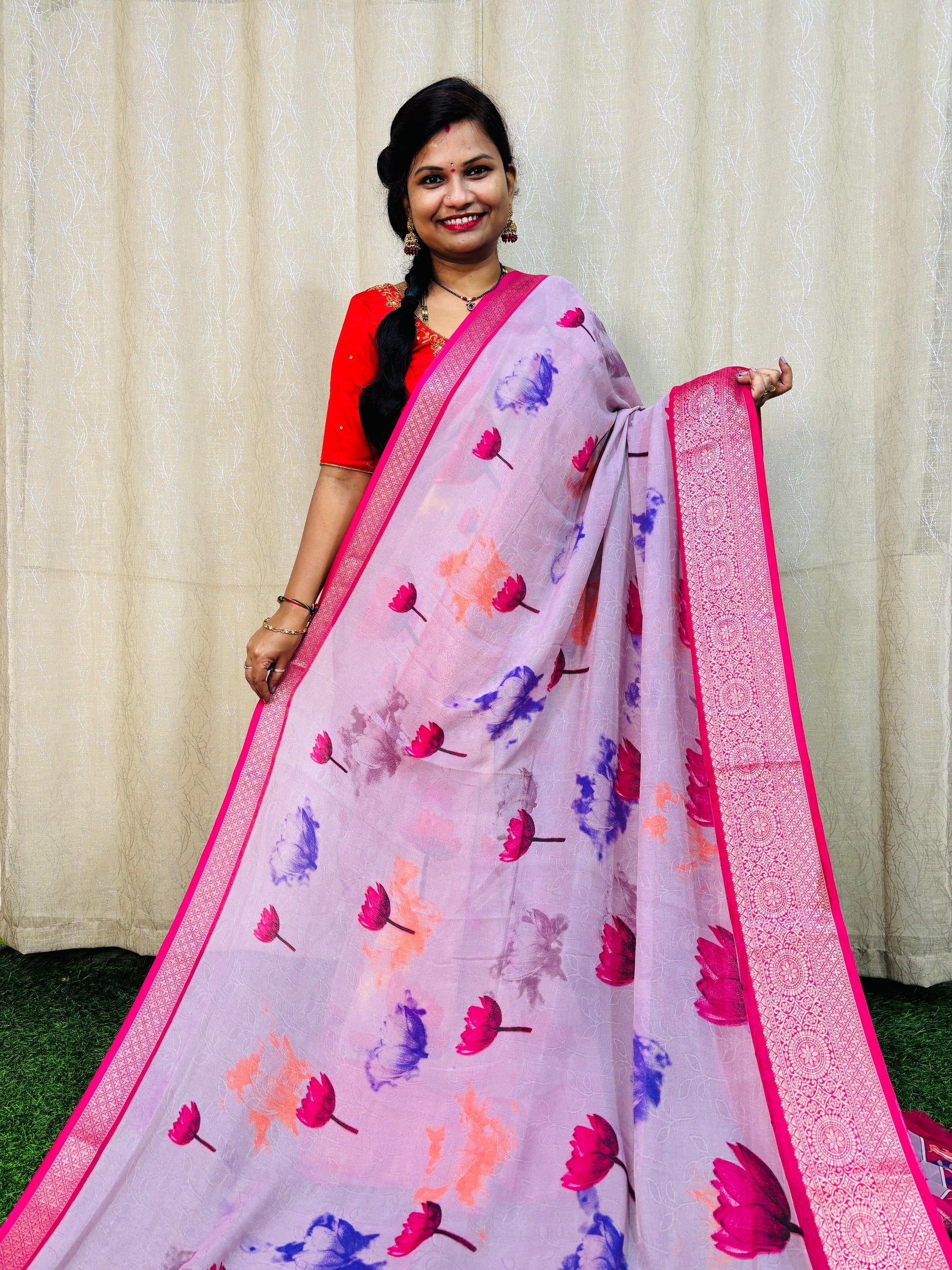 మా టై అండ్ డై షిఫాన్ జార్జెట్స్ చీరతో మీ శైలిని మరింత అందంగా తీర్చిదిద్దుకోండి. అద్భుతమైన లోటస్ పిచ్వై డిజైన్ మరియు గొప్ప కలంకారి పల్లుతో కూడిన ఈ చీర ఏ సందర్భానికైనా సరైనది. అధిక-నాణ్యత పదార్థాలతో తయారు చేయబడిన ఇది చక్కదనం మరియు సౌకర్యాన్ని అందిస్తుంది. మరియు కేవలం 950/- వద్ద, ఇది అజేయమైన విలువ.