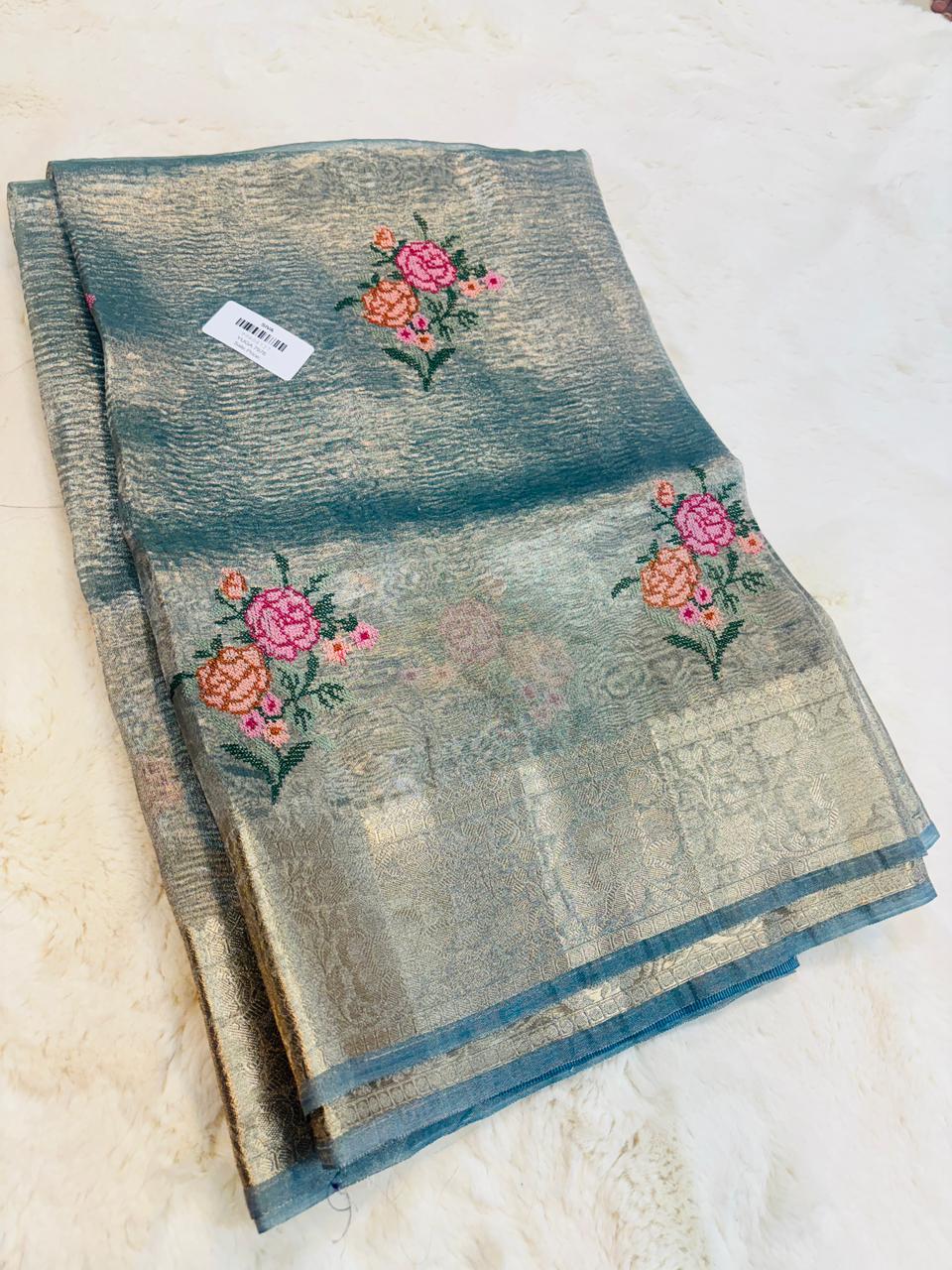 These tissue Kanchi borders add a touch of elegance to any clothing or fabric. Made with intricate craftsmanship, they feature delicate designs and vibrant colors, enhancing the aesthetic appeal of the product. Perfect for traditional outfits, these borders are sure to elevate the overall look and feel.