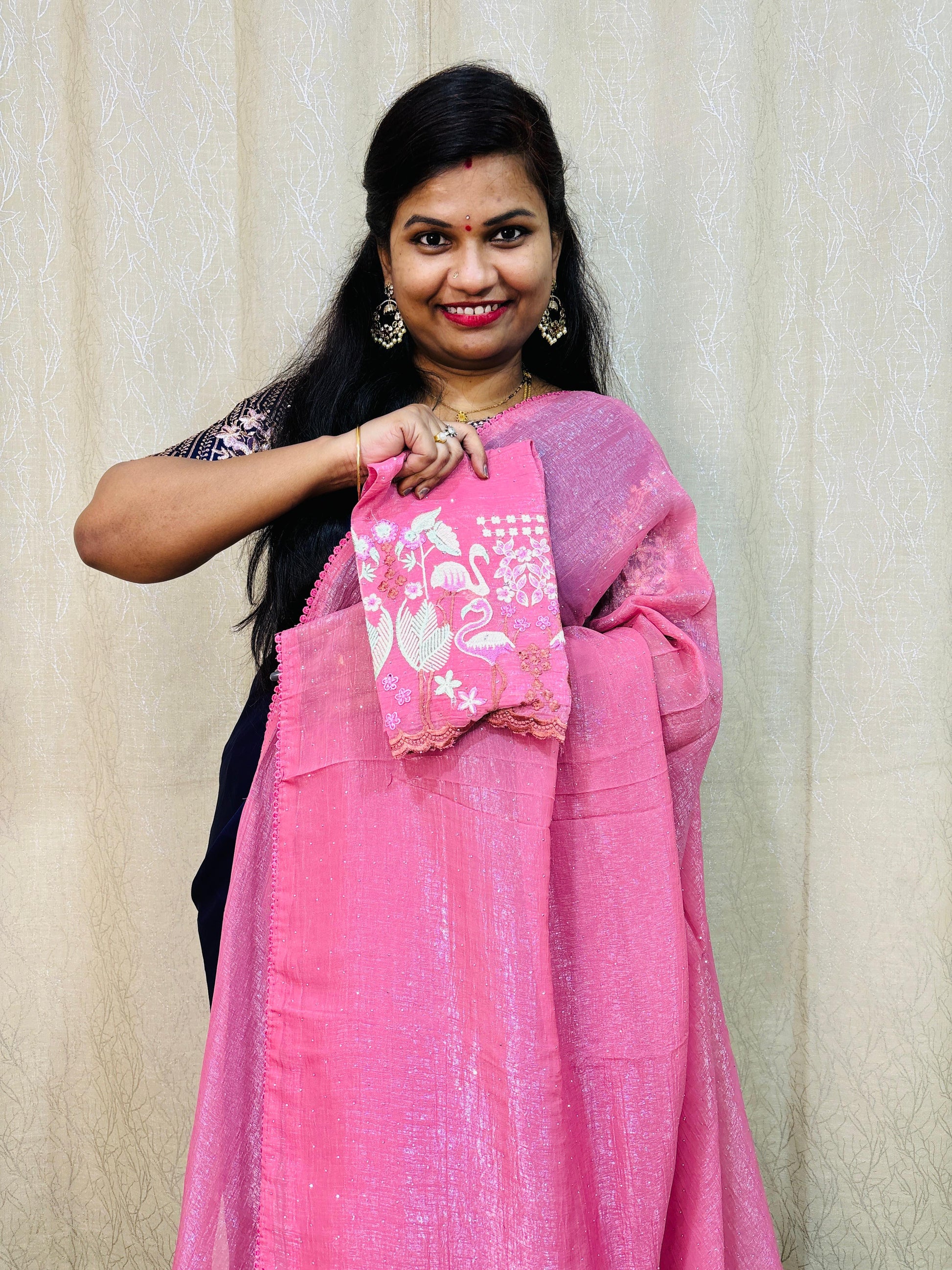 ఈ డిజైనర్ బ్లౌజ్ మా టిష్యూ క్రష్డ్ చీరతో సరిగ్గా జతకడుతుంది, ఇది మెరిసే స్వరోవ్స్కీ రాళ్లతో అలంకరించబడింది. ఈ విలాసవంతమైన కలయికతో మీ శైలిని పెంచుకోండి మరియు ప్రకాశించండి.