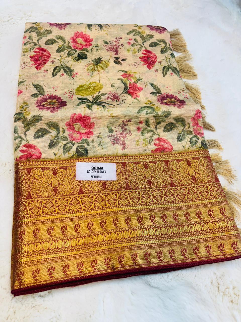 These tissue Kanchi borders add a touch of elegance to any clothing or fabric. Made with intricate craftsmanship, they feature delicate designs and vibrant colors, enhancing the aesthetic appeal of the product. Perfect for traditional outfits, these borders are sure to elevate the overall look and feel.