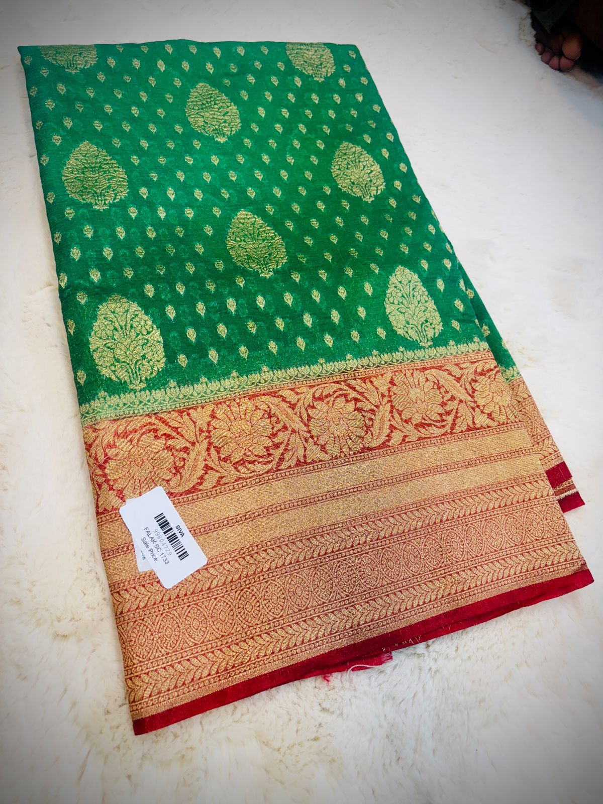 These tissue Kanchi borders add a touch of elegance to any clothing or fabric. Made with intricate craftsmanship, they feature delicate designs and vibrant colors, enhancing the aesthetic appeal of the product. Perfect for traditional outfits, these borders are sure to elevate the overall look and feel.