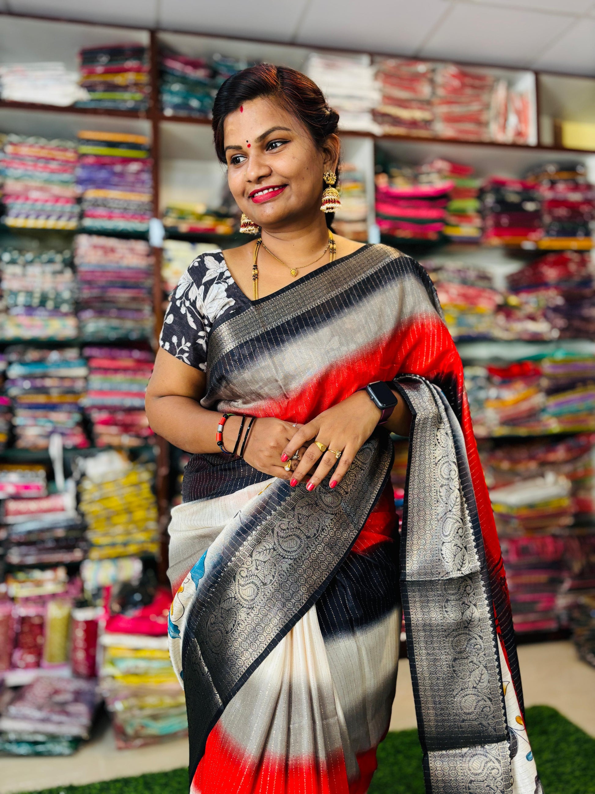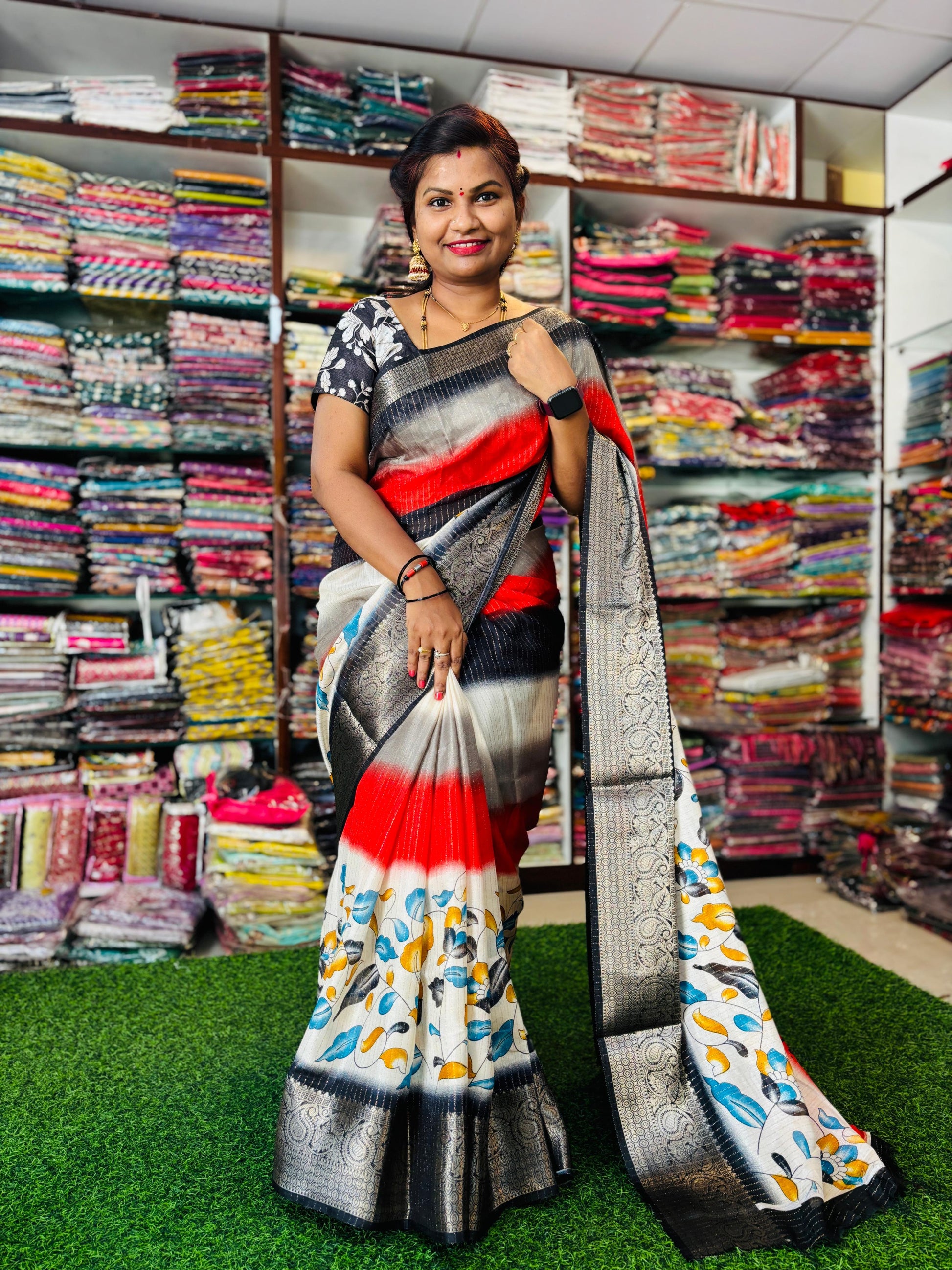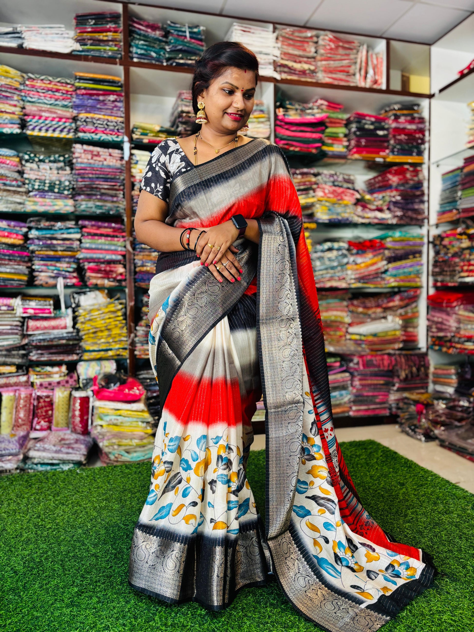 మల్టీ కలర్ క్రేప్ యొక్క ఉత్సాహభరితమైన ప్రపంచాన్ని అన్వేషించండి - ఇది ప్రత్యేకమైన జరీ నేత మరియు అద్భుతమైన కలంకారి ప్రింటెడ్ బార్డర్లను కలిగి ఉన్న అందమైన ఫాబ్రిక్. ఈ బహుముఖ పదార్థంతో ప్రత్యేకంగా నిలబడండి, ఏ సందర్భానికైనా సరిపోతుంది. స్టైలిష్ కాంట్రాస్ట్ బ్లౌజ్తో లుక్ను పూర్తి చేయండి. ఇప్పుడే దీన్ని కేవలం 499/-కి పొందండి.