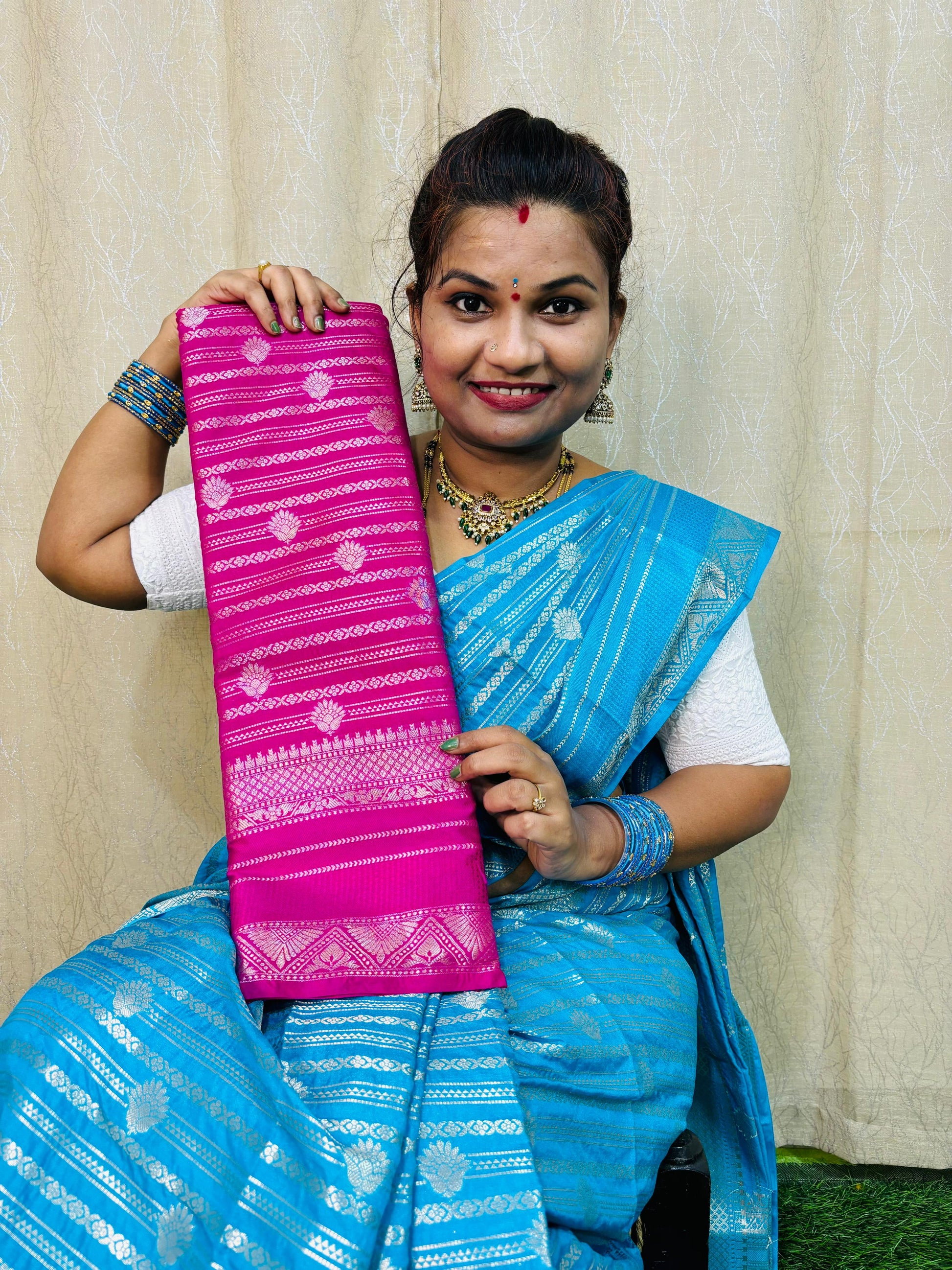 వెచ్చని బనారసి పట్టు అనేది వెచ్చదనం మరియు శైలి యొక్క సంపూర్ణ సమ్మేళనం. అధిక-నాణ్యత గల బనారసీ సిల్క్తో తయారు చేయబడింది, ఇది మిమ్మల్ని వెచ్చగా ఉంచుతూ విలాసవంతమైన సౌకర్యాన్ని అందిస్తుంది. దాని క్లిష్టమైన డిజైన్లు మరియు అందమైన నమూనాలతో, ఇది ఏదైనా దుస్తులకు చక్కదనం యొక్క స్పర్శను జోడిస్తుంది. ఈ శీతాకాలంలో వెచ్చని బనారసి పాటతో హాయిగా మరియు చిక్గా ఉండండి.