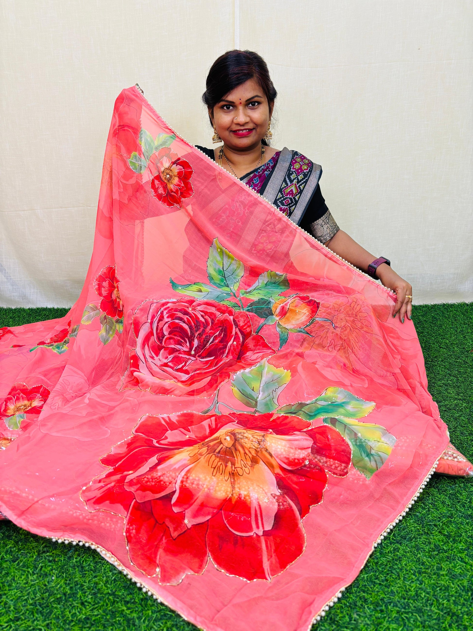 Elevate your style with our Zardosi Work Chiffons. These chiffon fabrics are embellished with intricate Zardosi work, known for its delicate details and traditional craftsmanship. Perfect for any occasion, these fabrics add a touch of elegance and sophistication to any outfit. Expertly crafted for a flawless finish, indulge in the luxury of Zardosi work chiffons.
